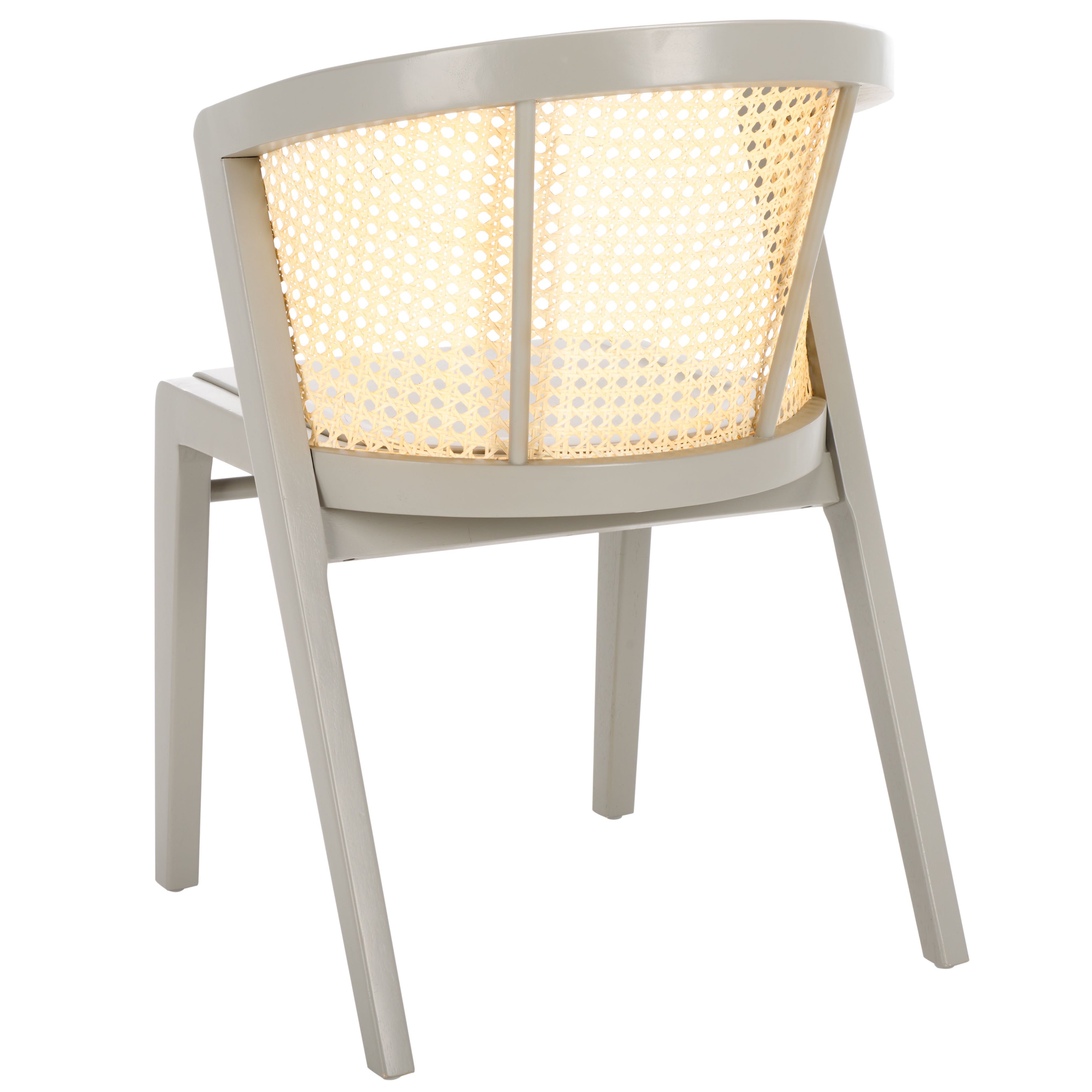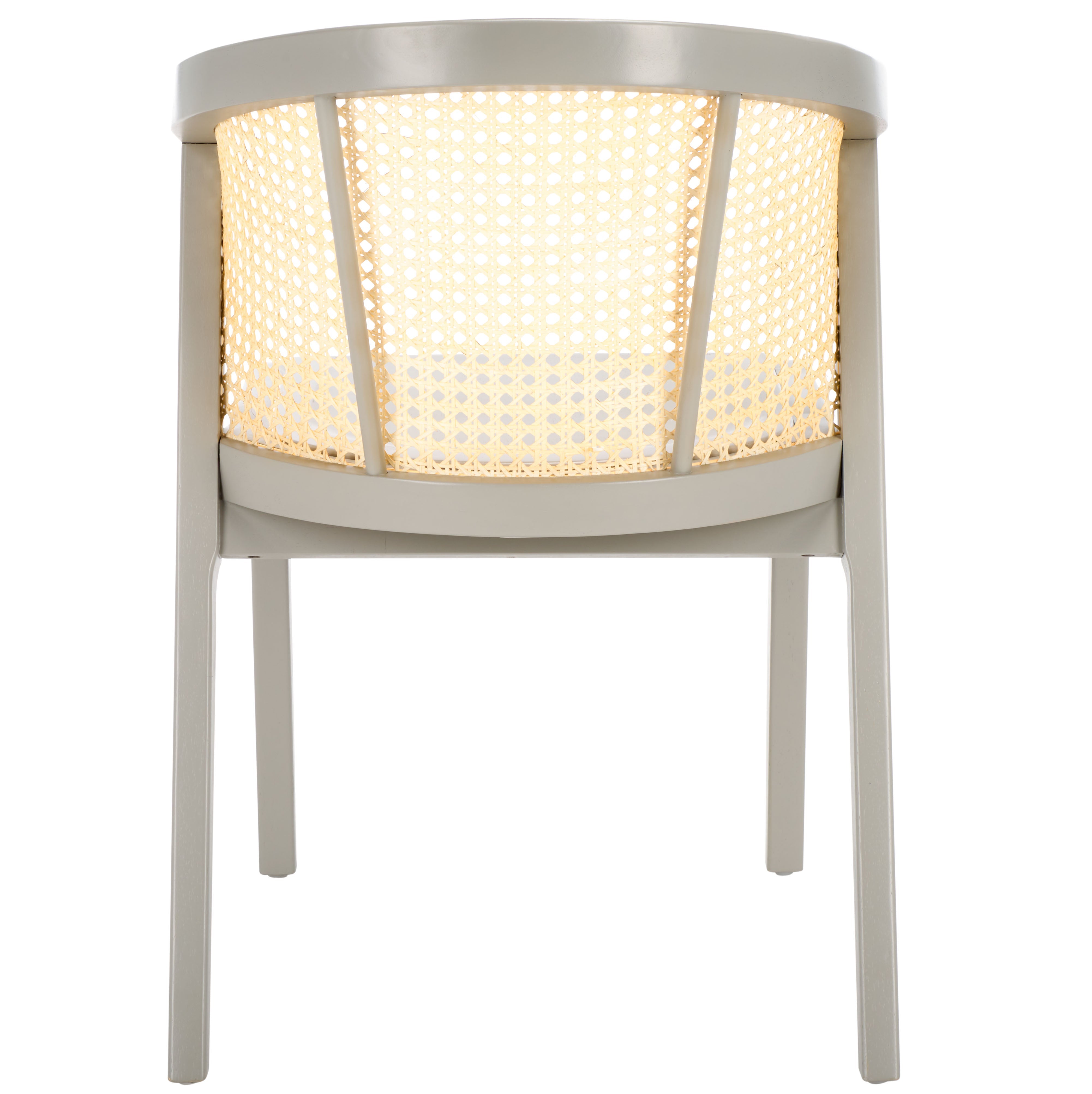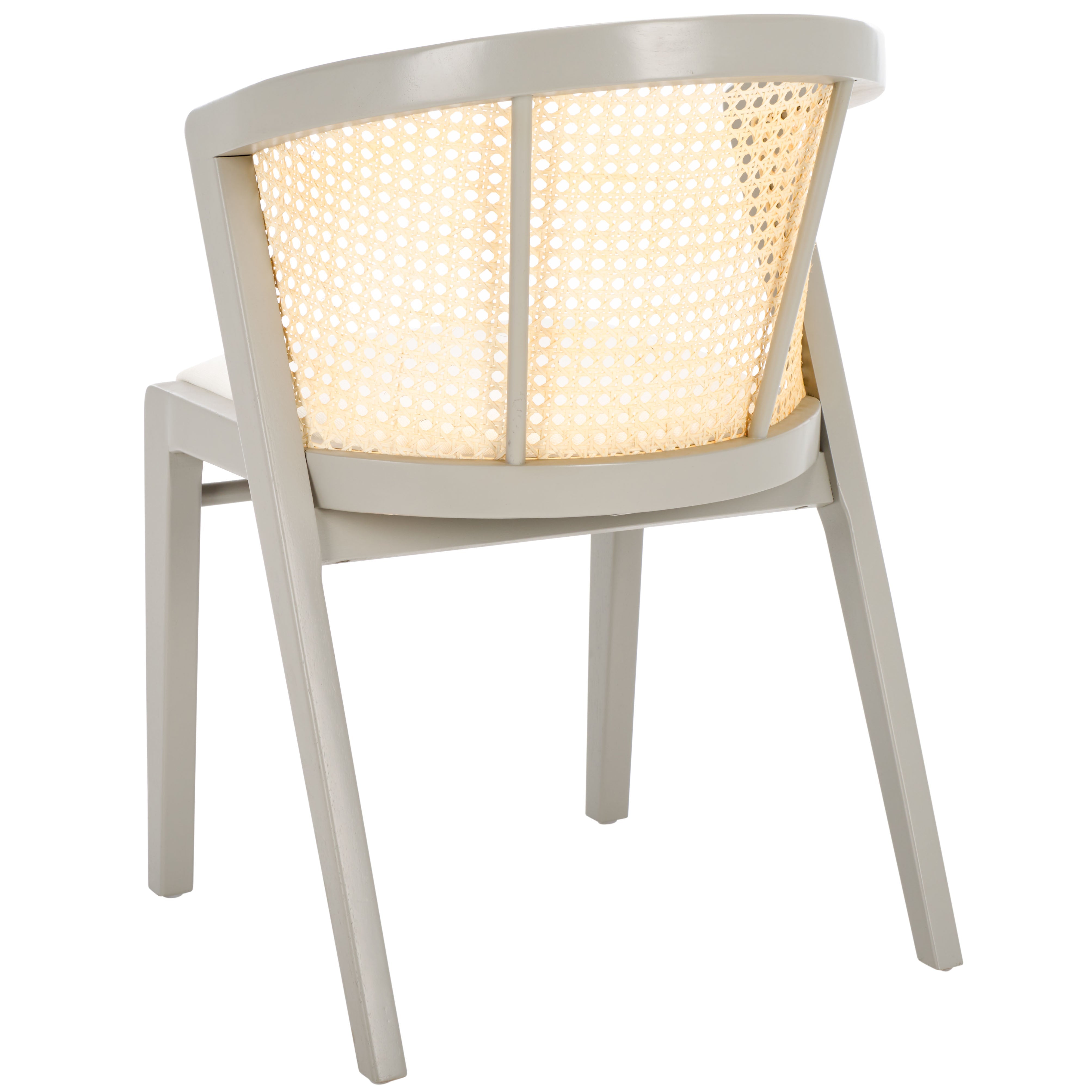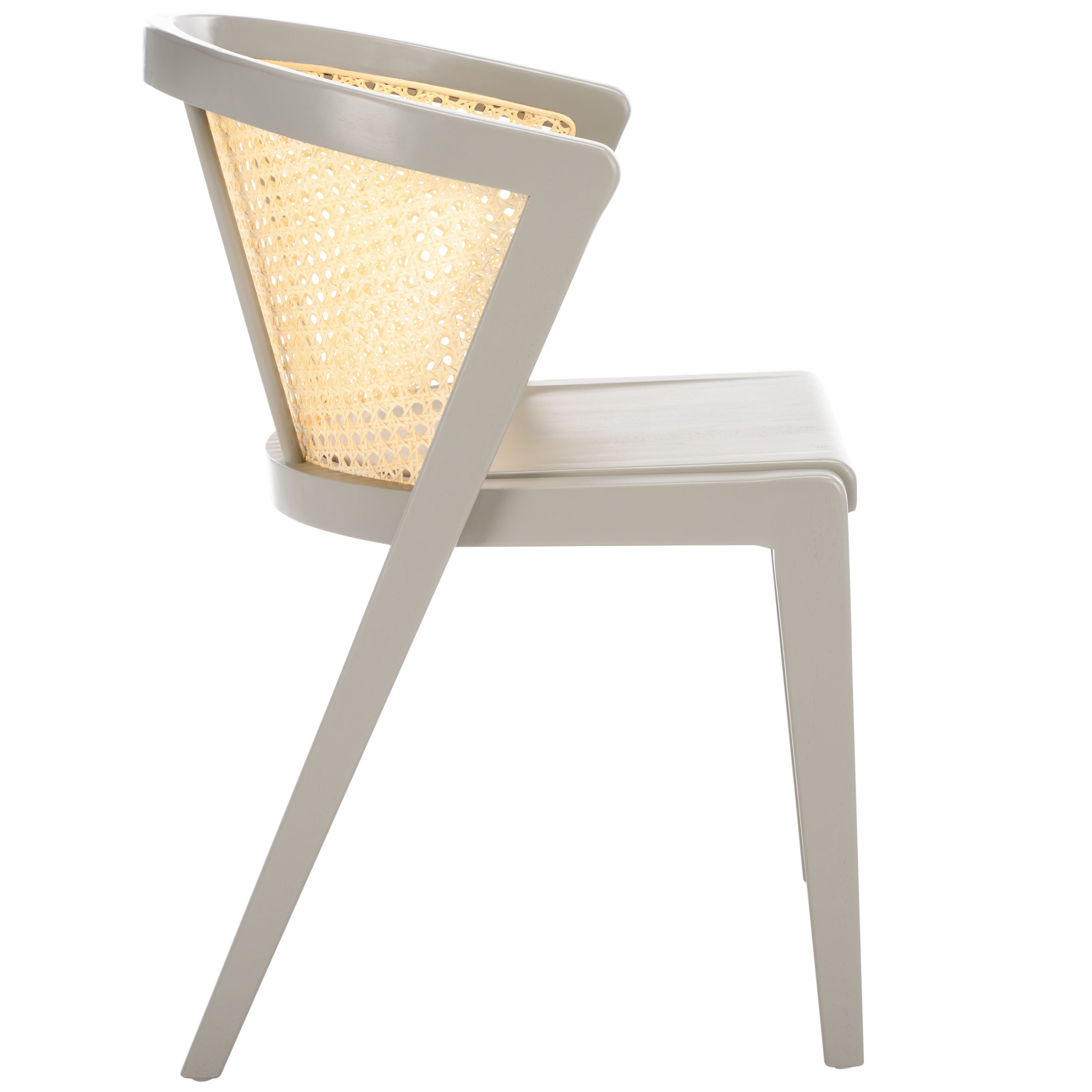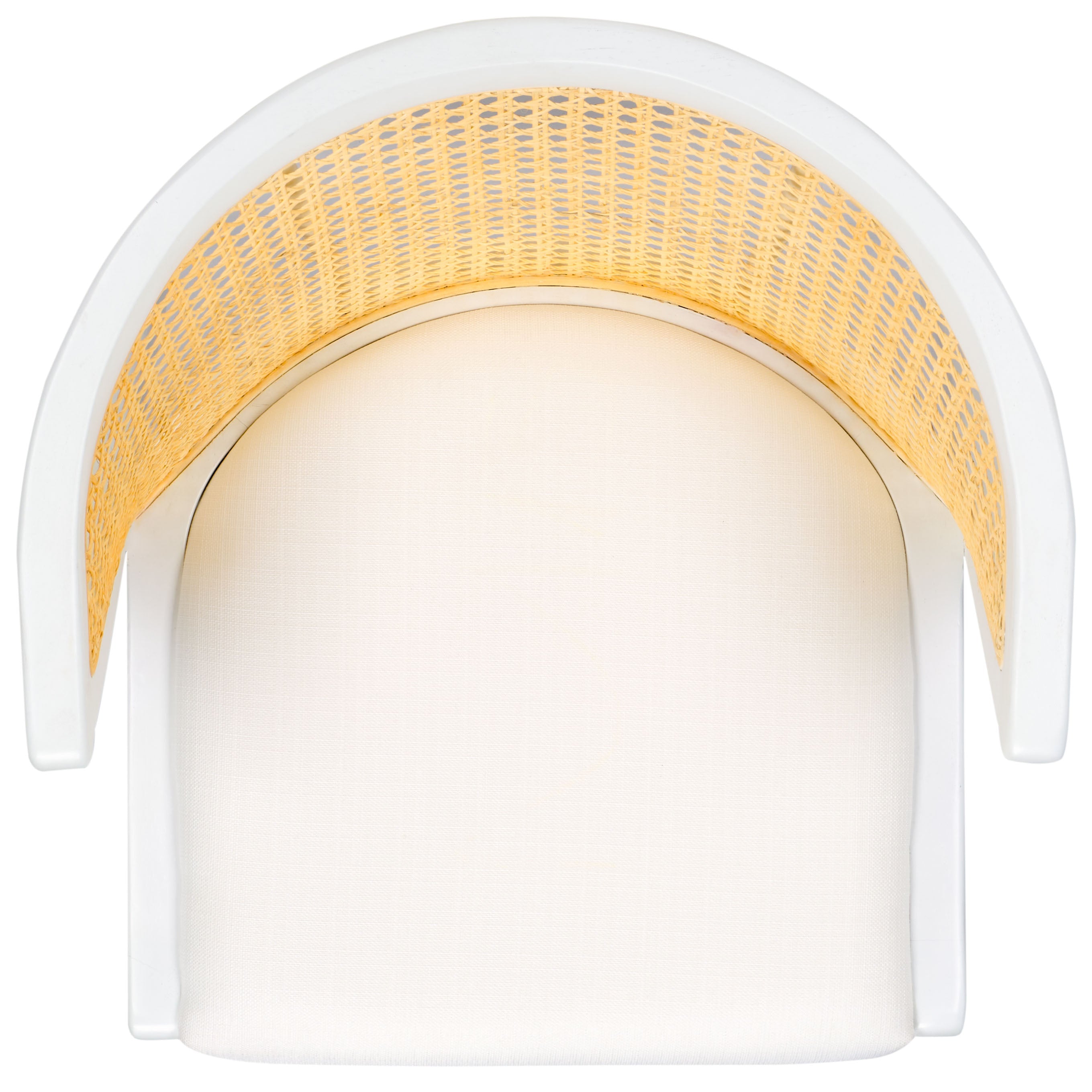 Liven up your home with the modern charm and breezy appeal of our Edan dining chair. Its mid-century modern appeal is combined with rich materials to add a cozy and fashionable edge to any room. The beautifully refined barrel back of the chair is updated with the rich texture of rattan. Crafted in solid wood, our dining chair enlivens any space with its warm and rich textural appeal. It includes a white padded seat to lend comfort and stylishly casual air to your kitchen, dining room, or living area.