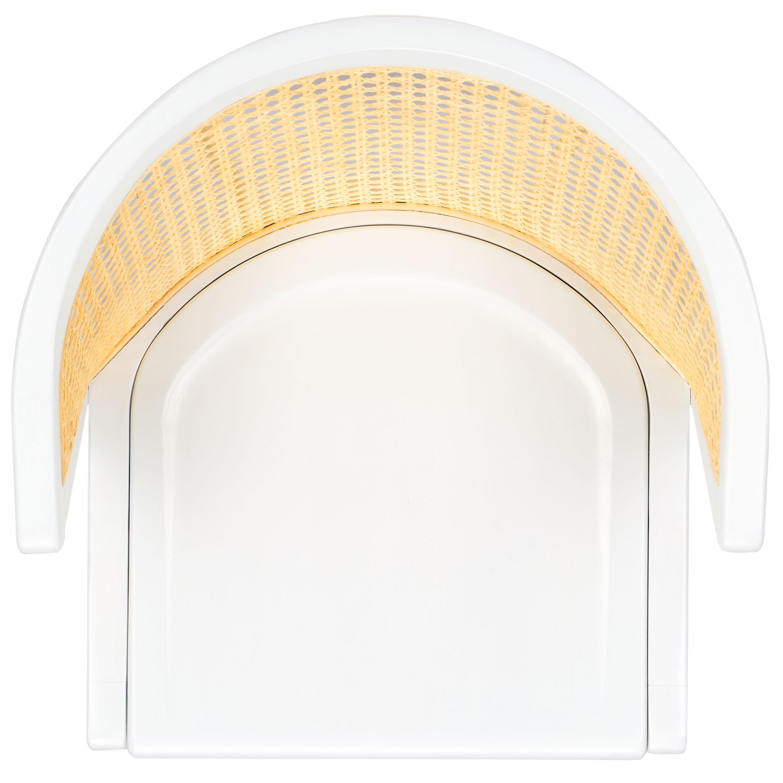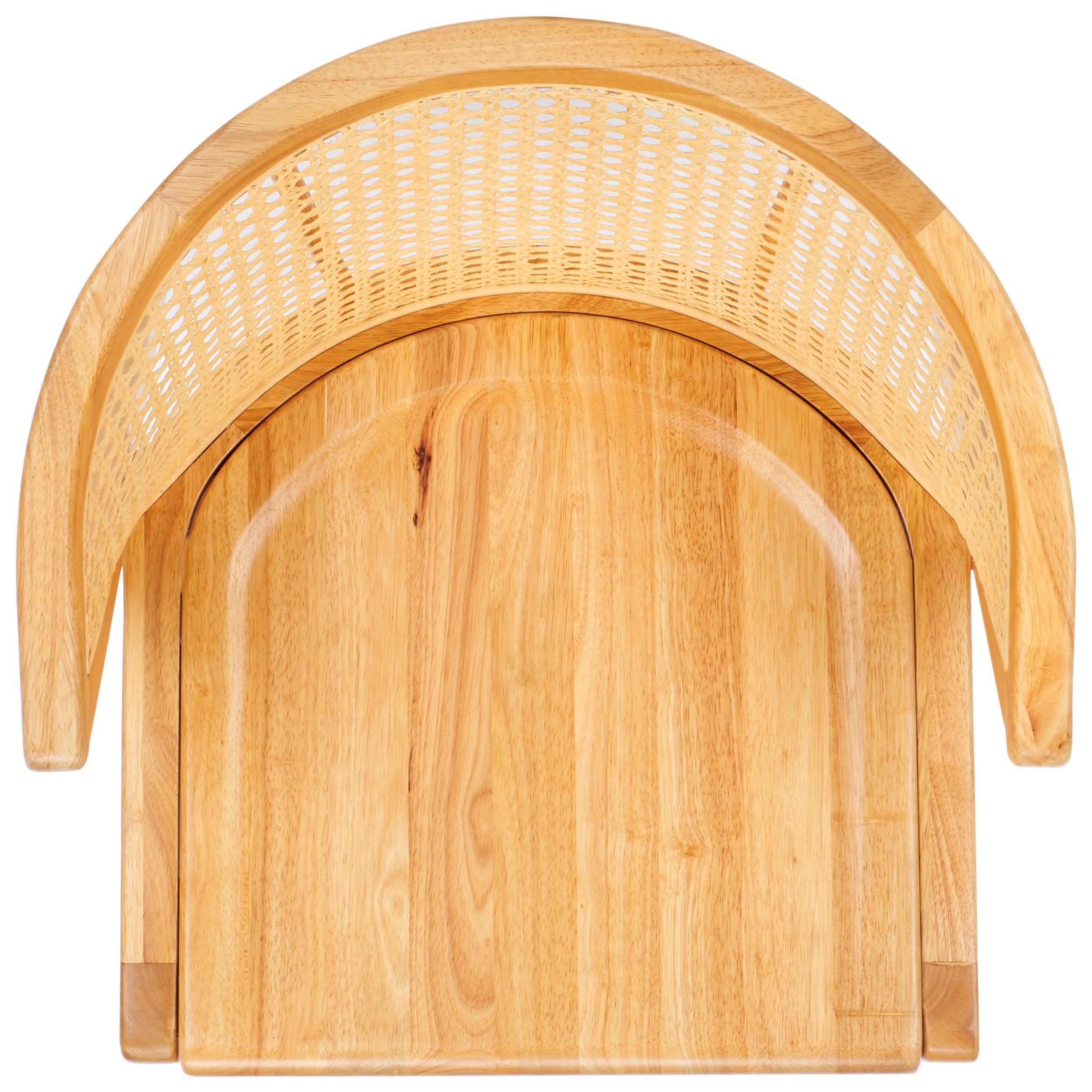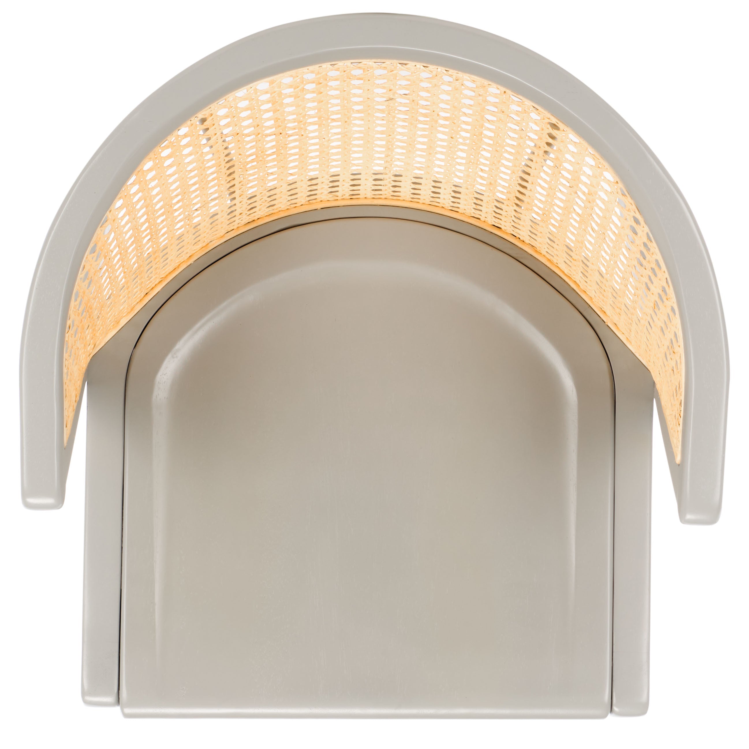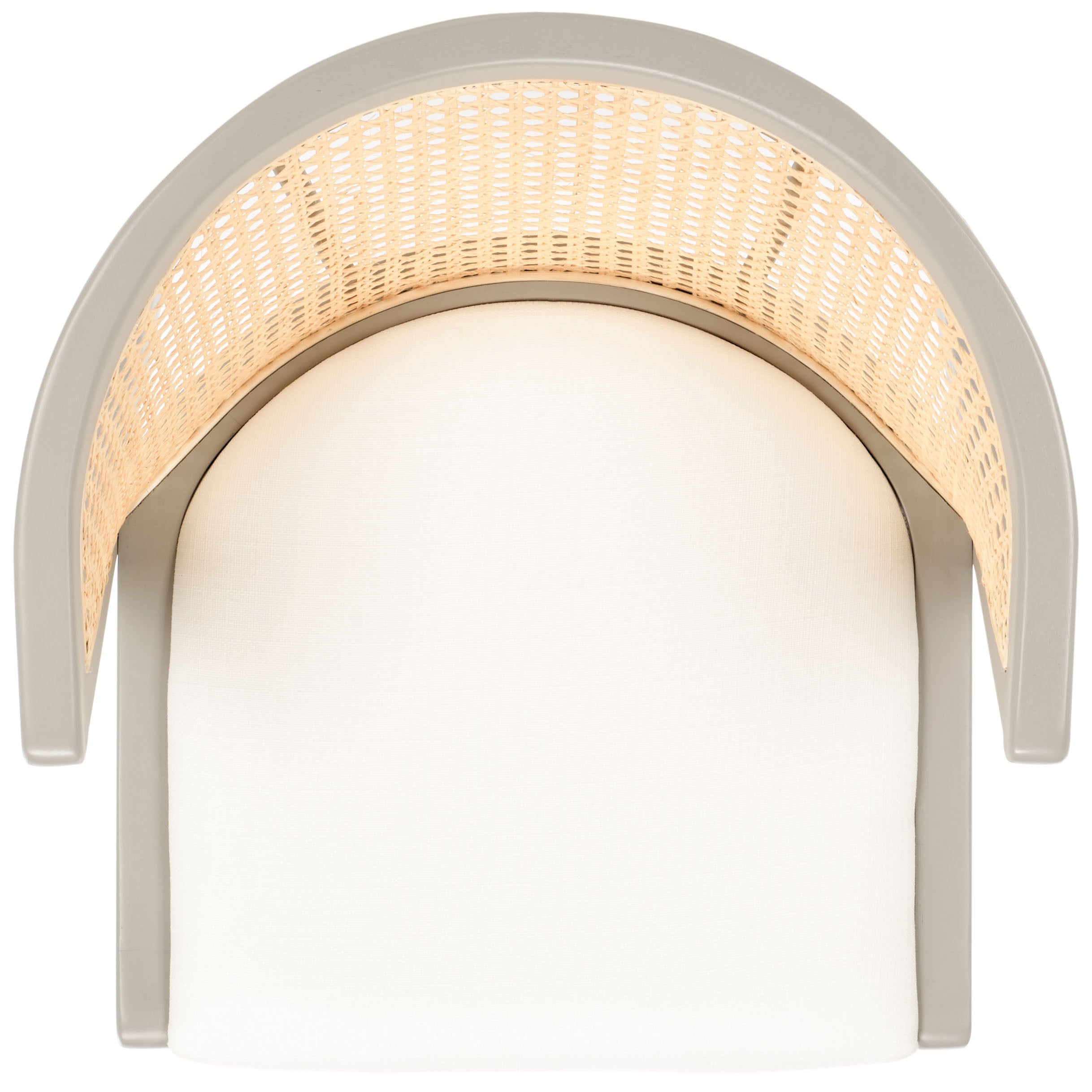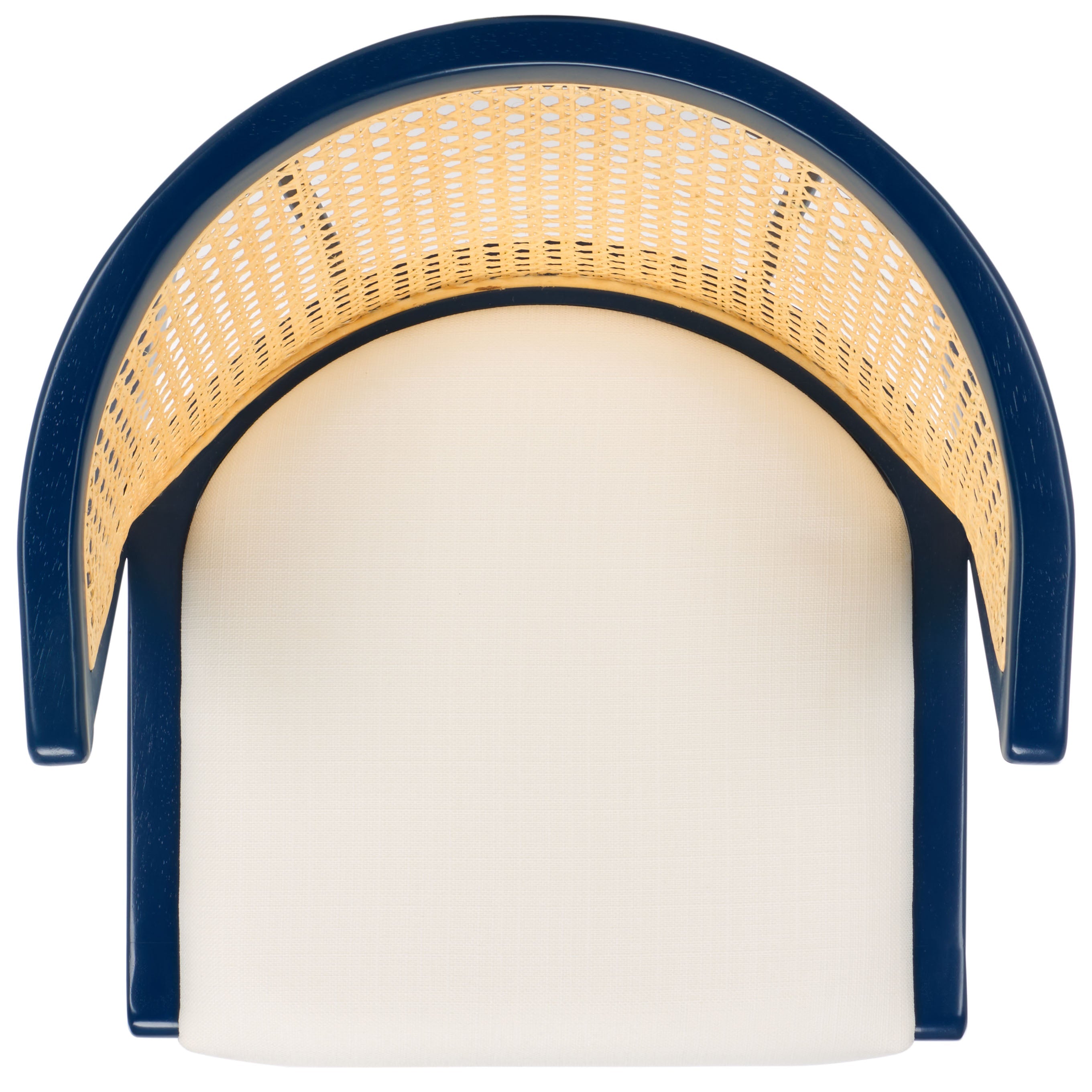 Liven up your home with the modern charm and breezy appeal of our Edan dining chair. Its mid-century modern appeal is combined with rich materials to add a cozy and fashionable edge to any room. The beautifully refined barrel back of the chair is updated with the rich texture of rattan. Crafted in solid wood, our dining chair enlivens any space with its warm and rich textural appeal. It includes a white padded seat to lend comfort and stylishly casual air to your kitchen, dining room, or living area.