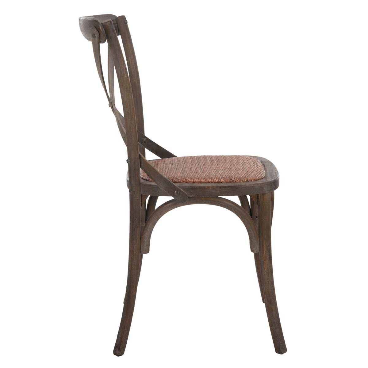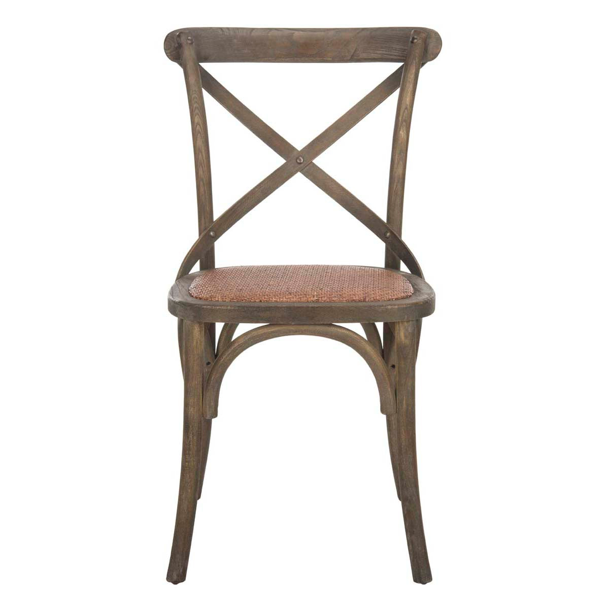 Called the Franklin X Back Chair, Safavieh?? version of Michael Thonet?? classic A150 bistro chair is crafted of solid American oak in a weathered oak distressed colonial walnut finish. With rattan caning on its seat and the characteristic arch brace Franklin complements every kitchen and dining room from country to coastal. Comes in sets of two.