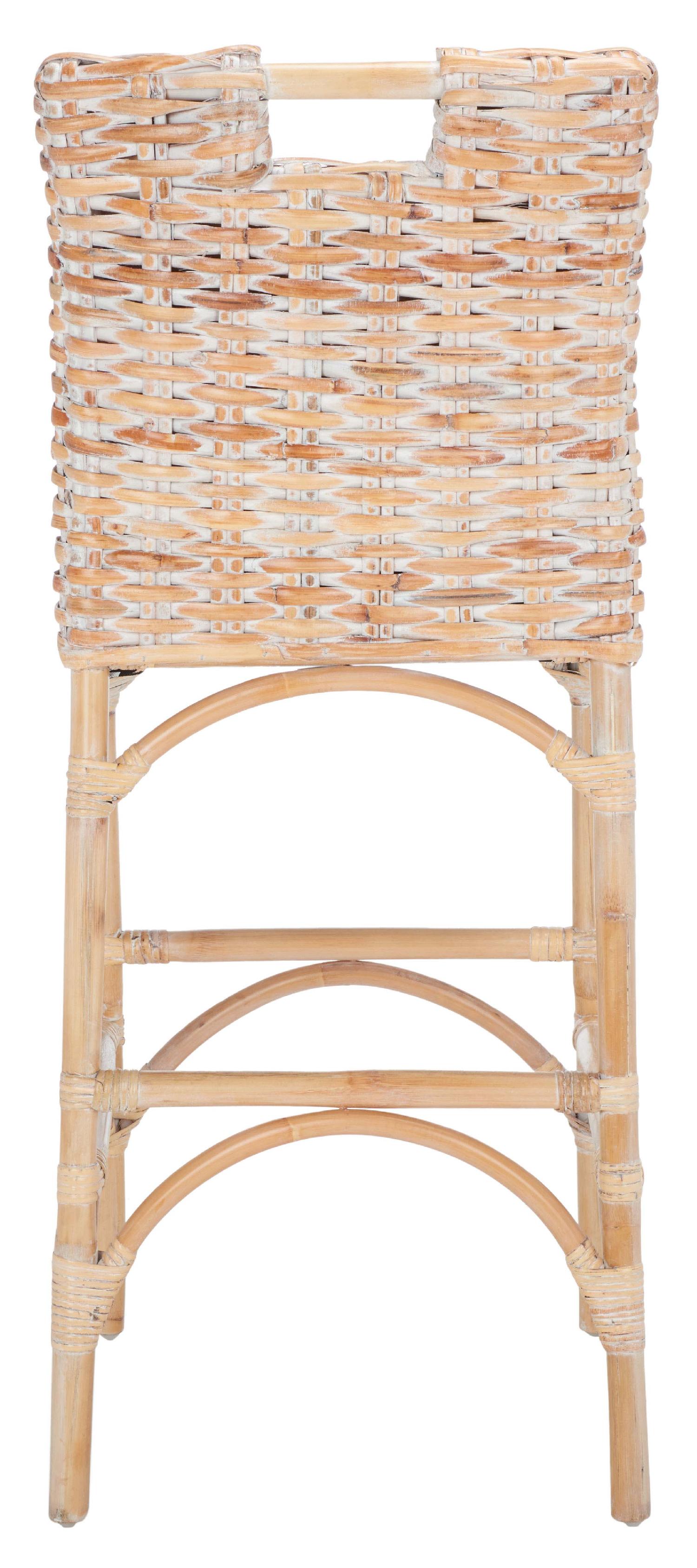 A coastal-chic twist on traditional British Colonial styling, this Fremont Barstool brings a breezy vibe to any boho or tropical interior. Fremont's natural whitewash rattan pairs perfectly with its bamboo-inspired legs and wrap details.