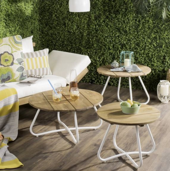 The home of Brazil?? top architect inspired this 3 piece wood top coffee table set. Entertaining is a breeze when the natural and metal tables are used together or apart. An update for any outdoor space, its value and versatility make it a designer favorite.