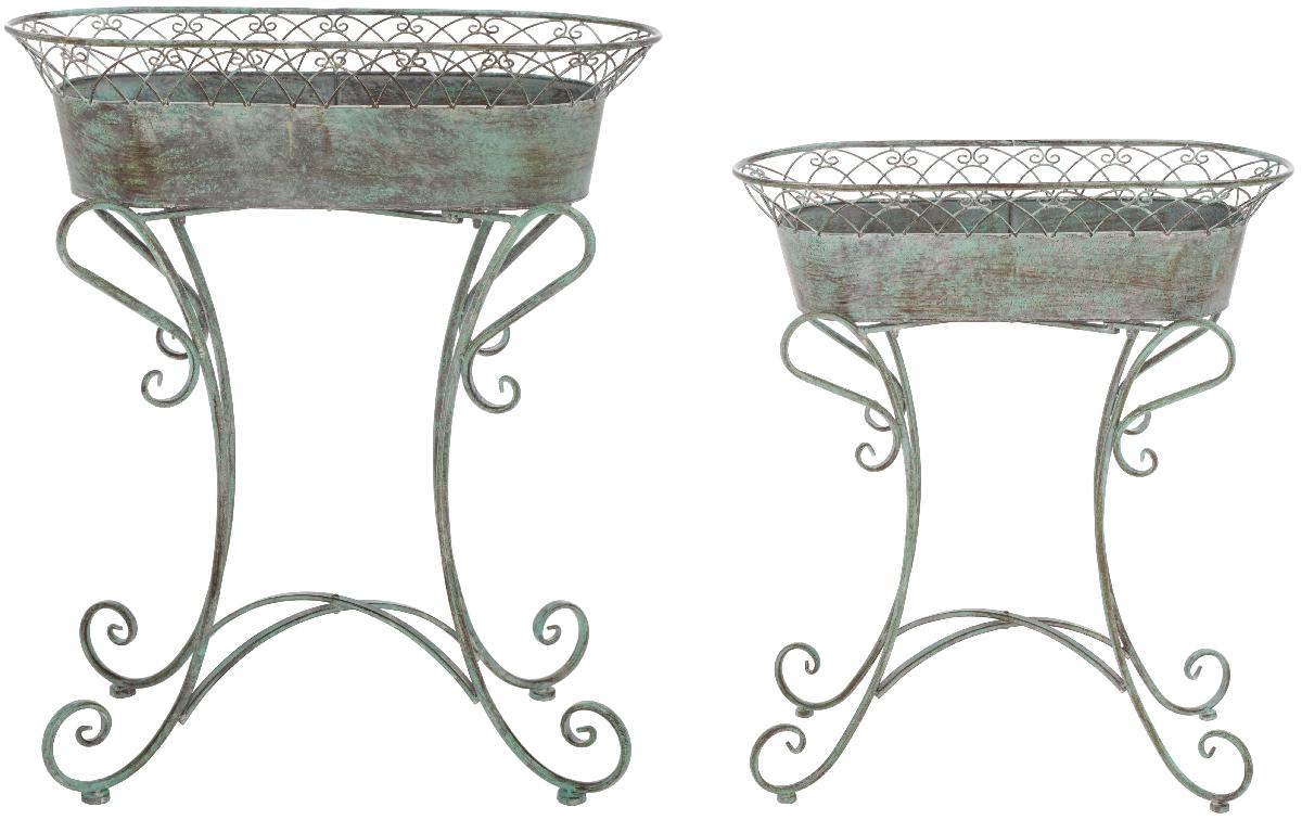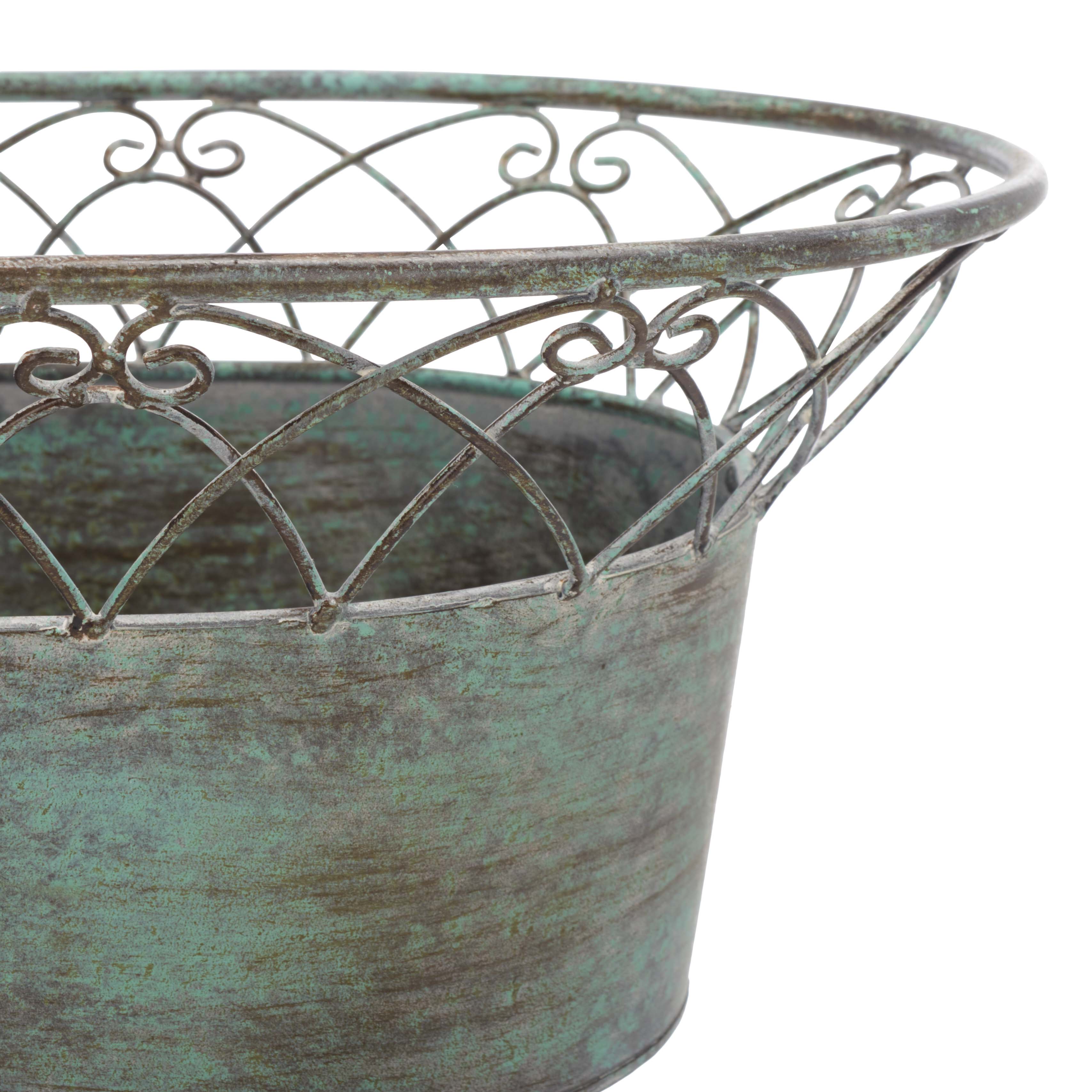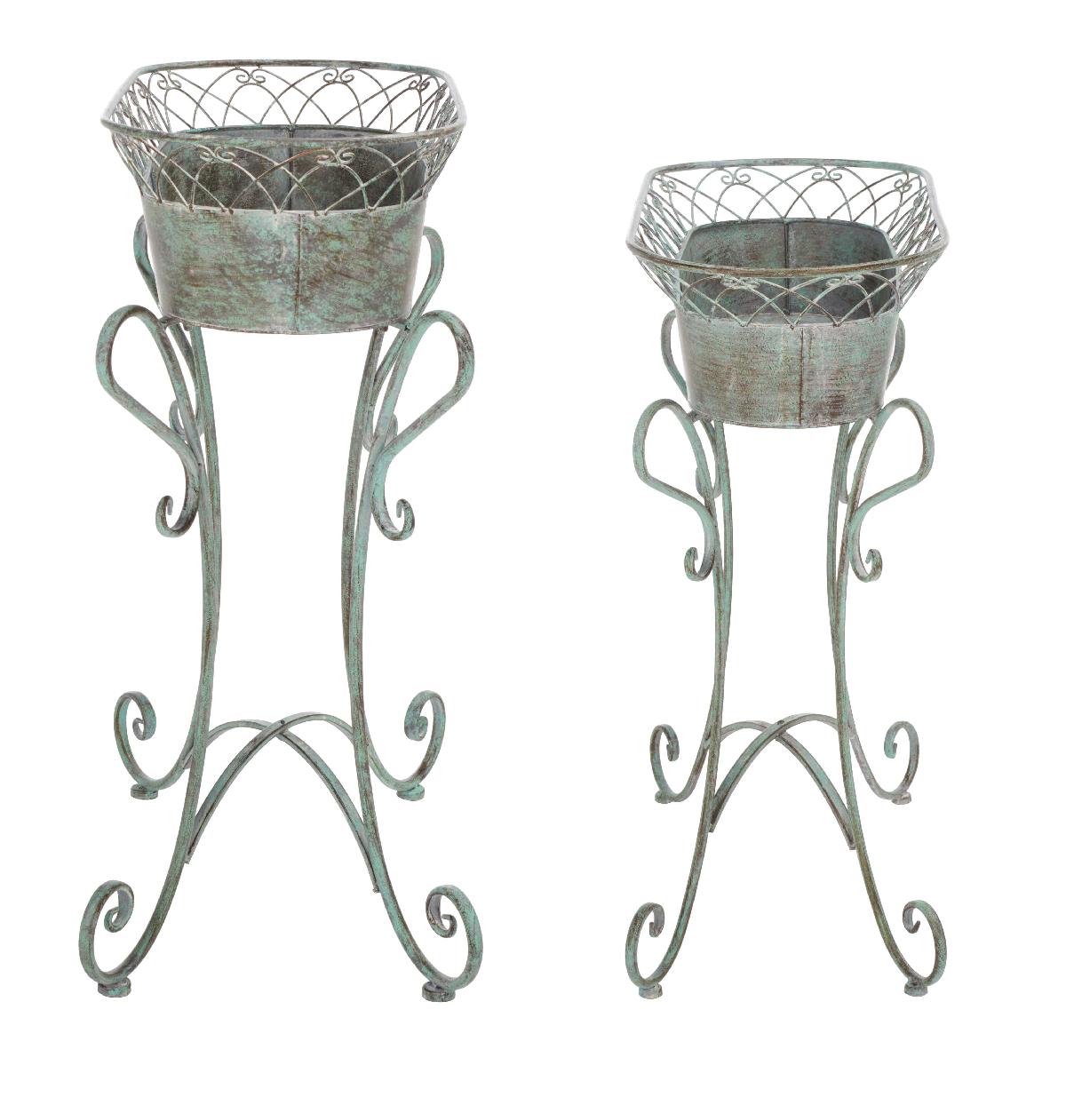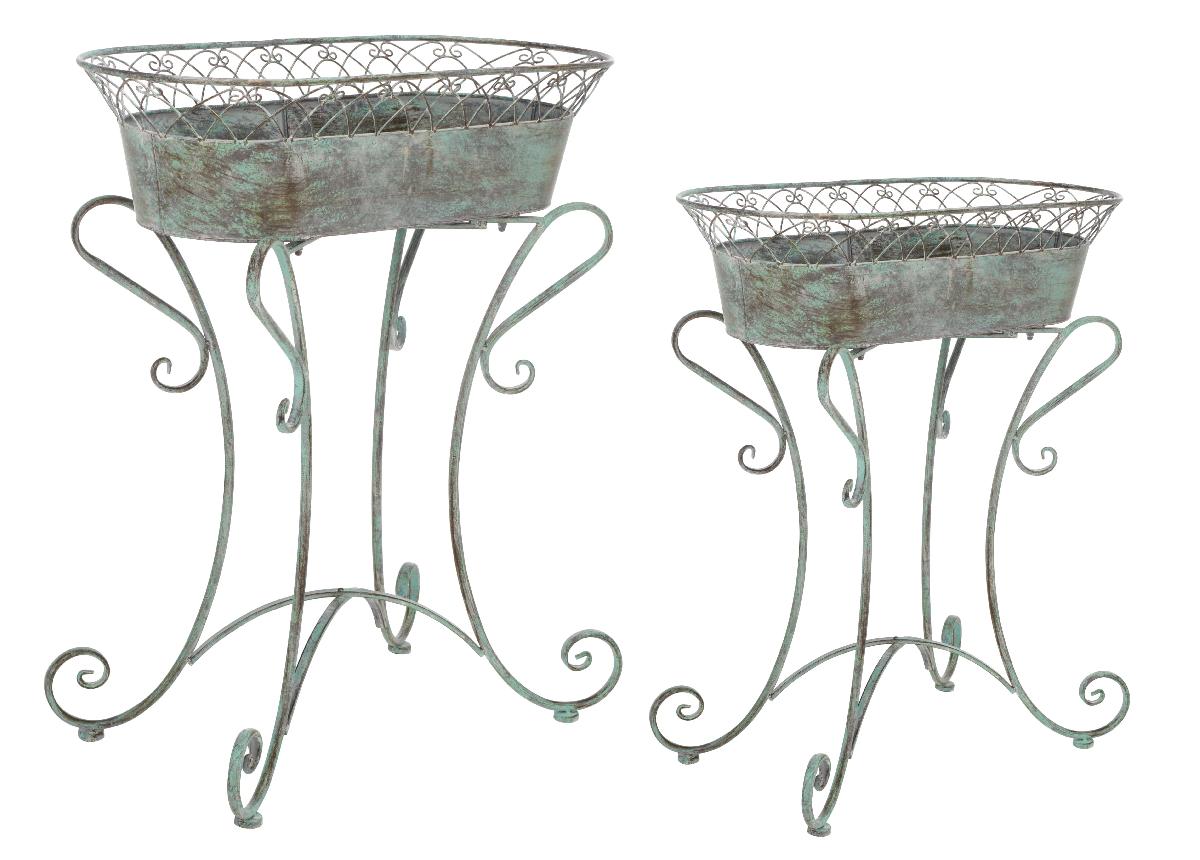 Inspired By Rustic French Provencal Style, These Chic Hendrick Planters Transform Any Garden, Outdoor Living Area, Or Porch Into A Floral Haven. Crafted With The Gorgeous Curves And Scrolls Of Artistic Ironwork, Its Soft Antique Blue Hue Makes It A Classic.