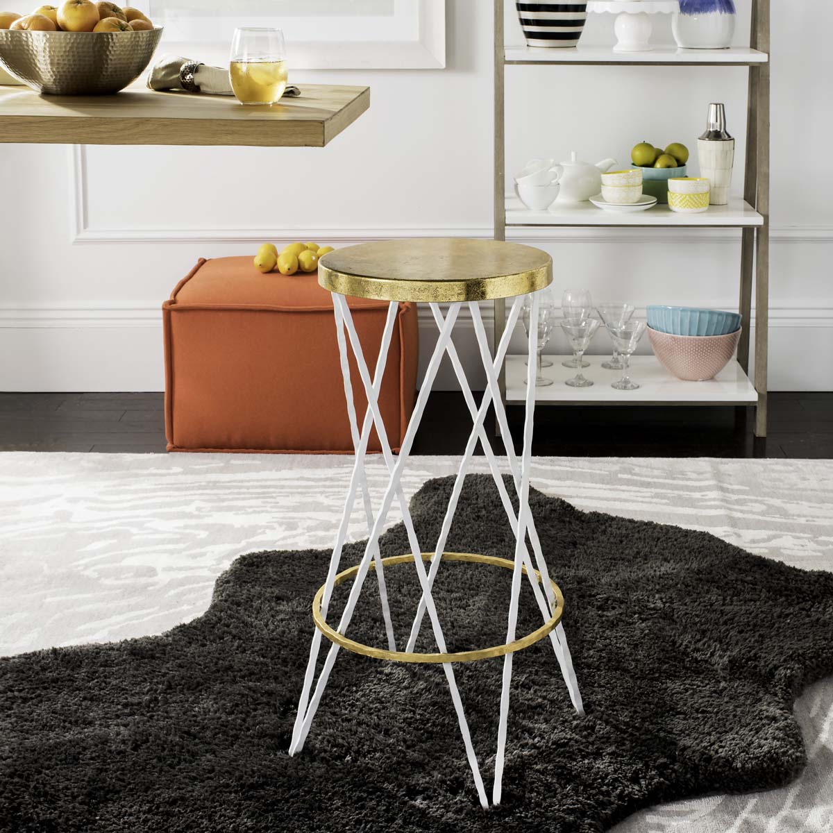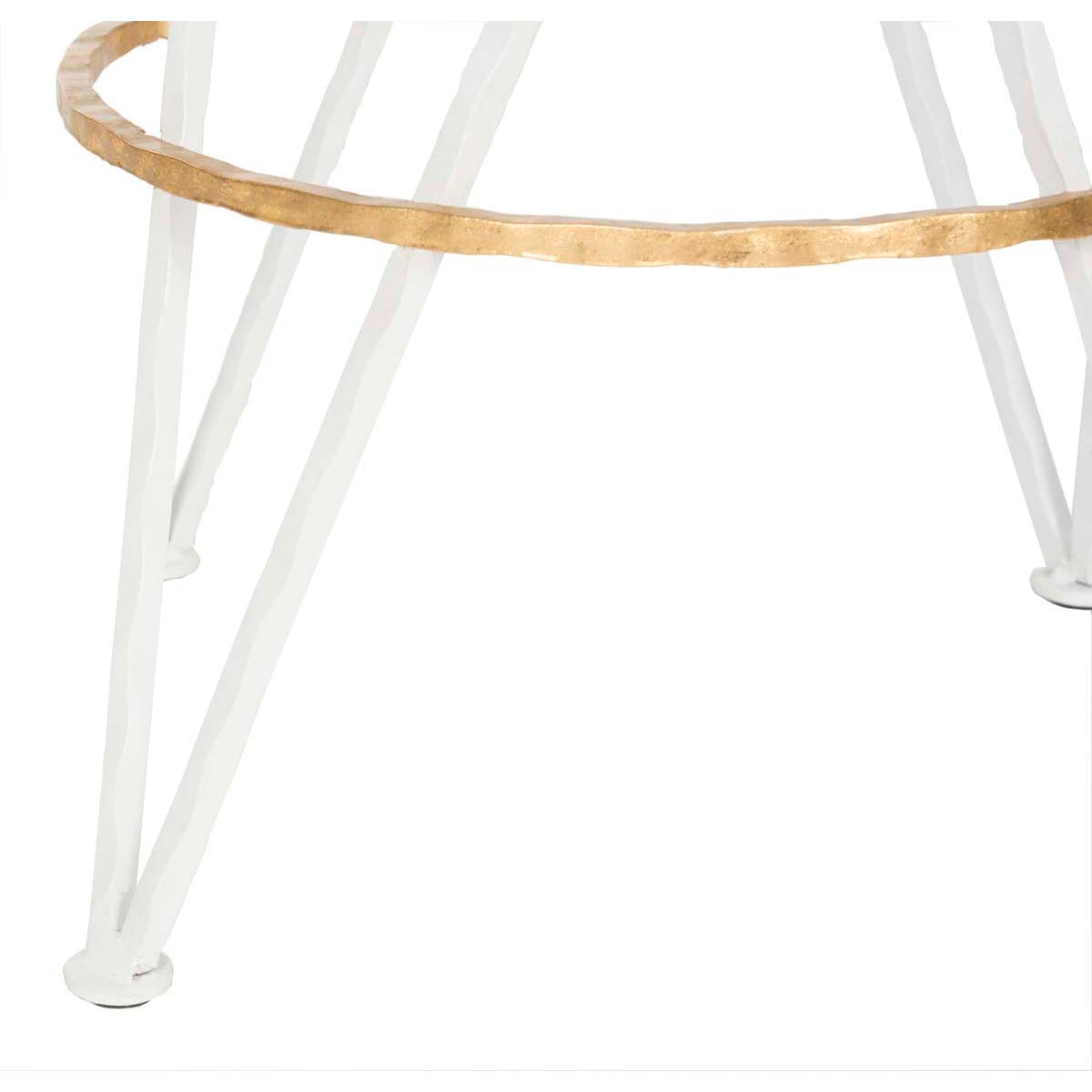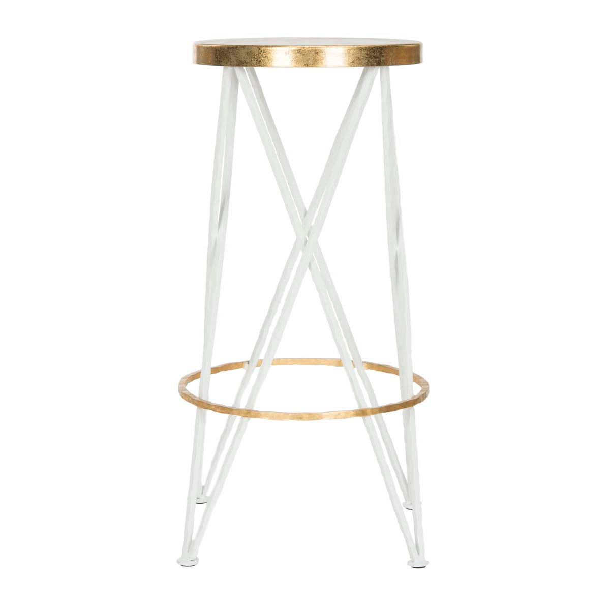 Elevate any interior with this contemporary bar stool. Designed to recreate the ambient interiors of an iconic Hong Kong lounge, its substantial iron construction features sleek white retro hairpin style legs paired with an opulent gold finished seat.