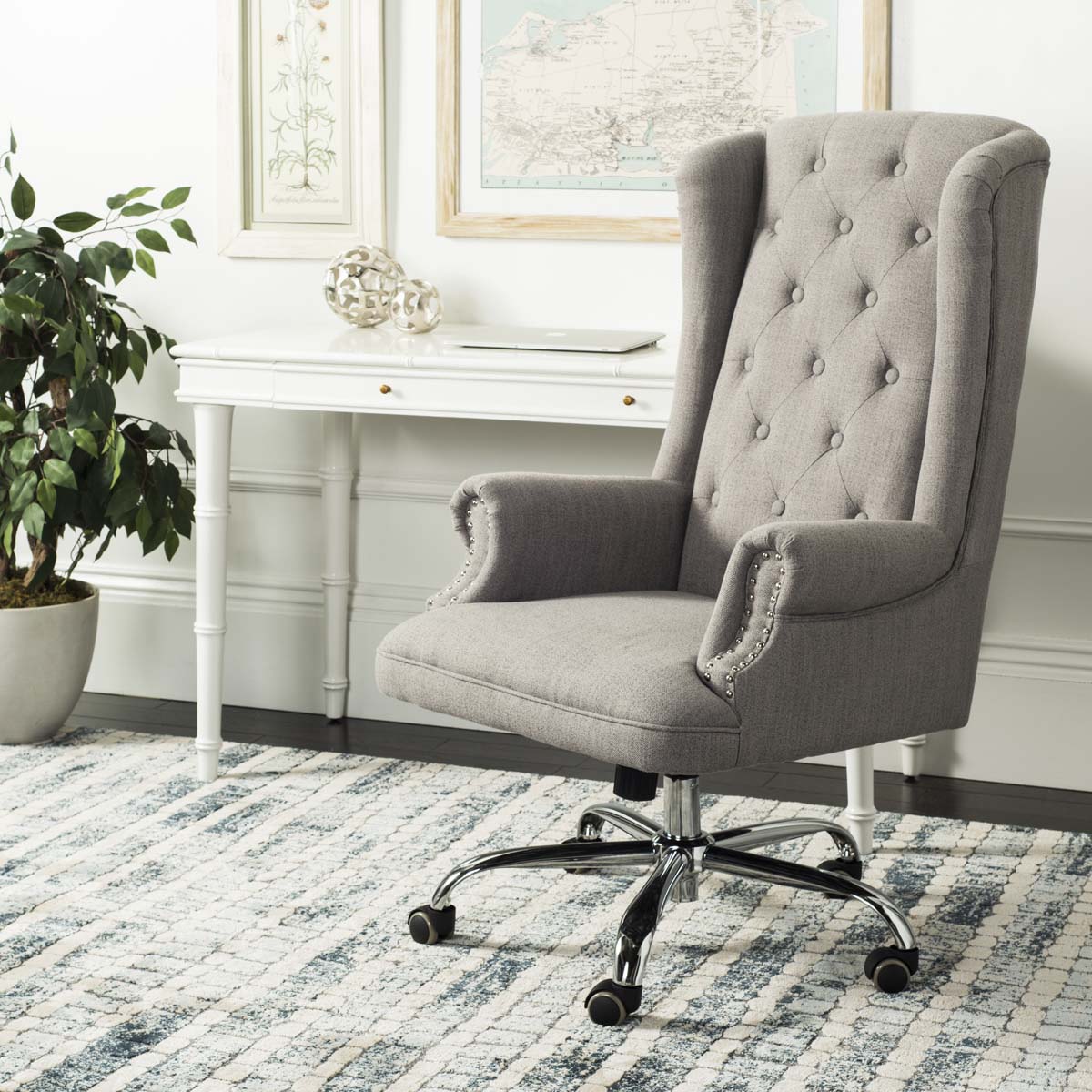 Safavieh Ian Linen Chrome Leg Swivel Office Chair - Grey / Chrome