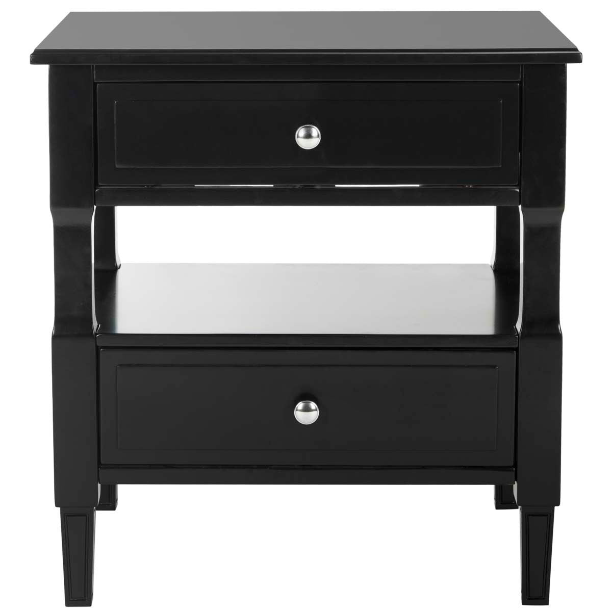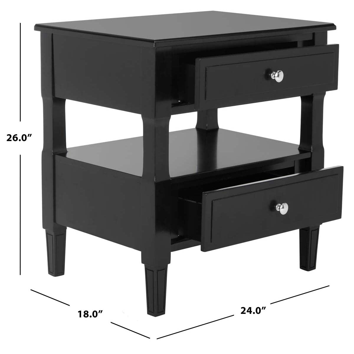 An impromptu retreat to the heart of Burgundy inspired this black two drawer nightstand. A fine iteration of French country living, this transitional piece features delicately crafted wood detail on its legs, stylish silver pulls and layers of storage.