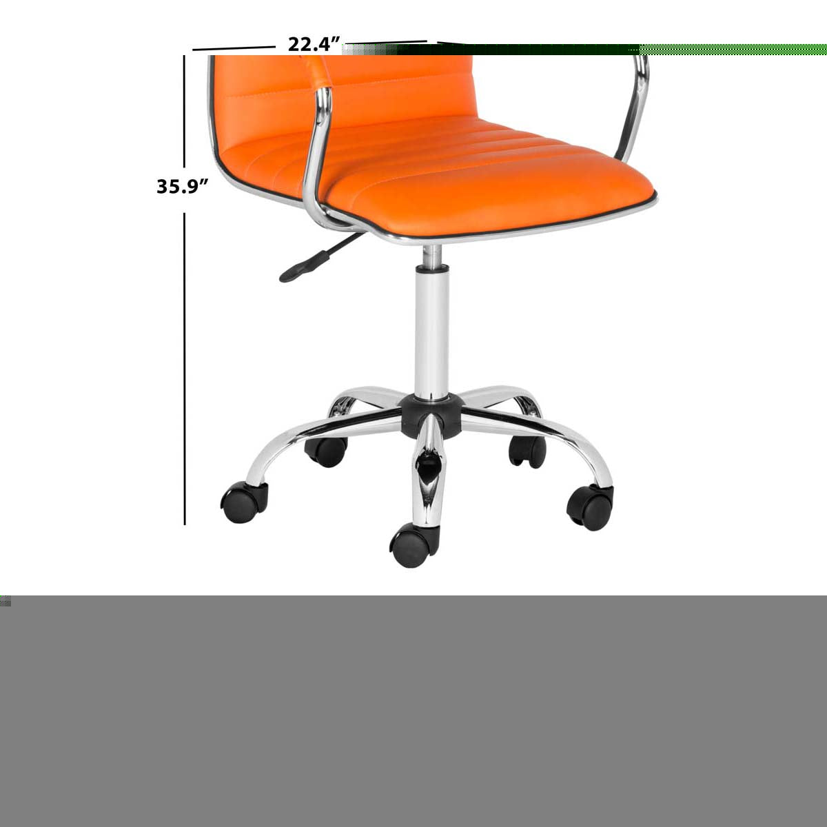 With its comfy armrests and gently arched back supporting seat that adjusts from 19.7" to 24", the Jonika desk chair is a must for the contemporary office. Bold orange PU leather and chrome legs on casters make the workplace just a bit more wonderful.