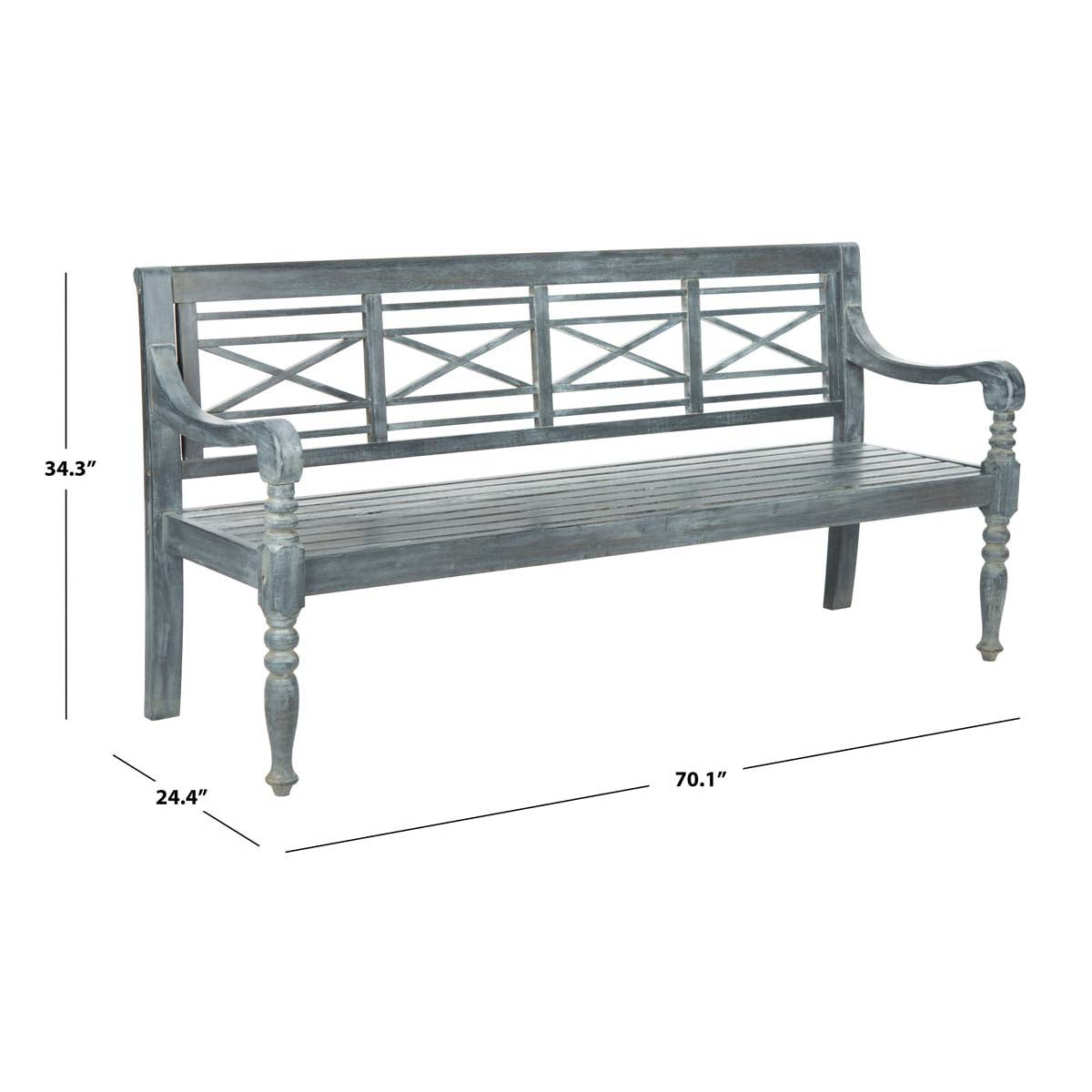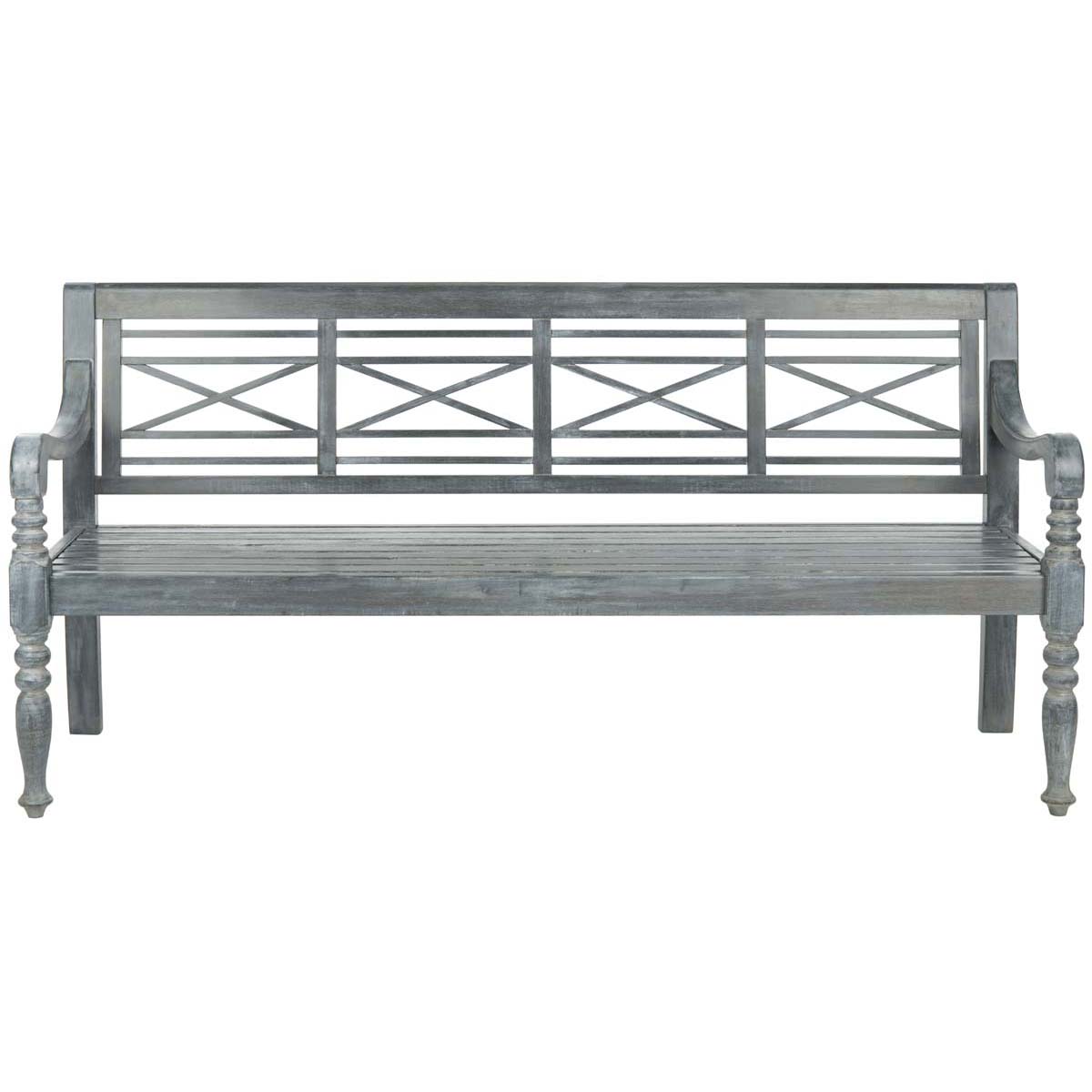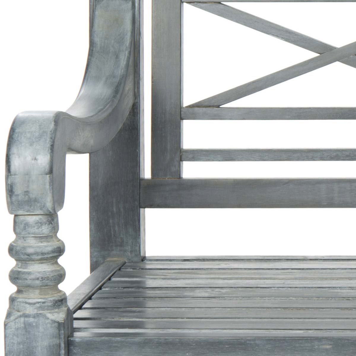 A classic garden bench inspired by the cross hatched lattice pattern found in English Cottages, the romantic Karoo Bench is a welcome addition to porch or patio. Designed with beautiful proportions and artfully turned legs, this future heirloom is crafted of sustainable acacia wood in ash grey finish and silver galvanized hardware.