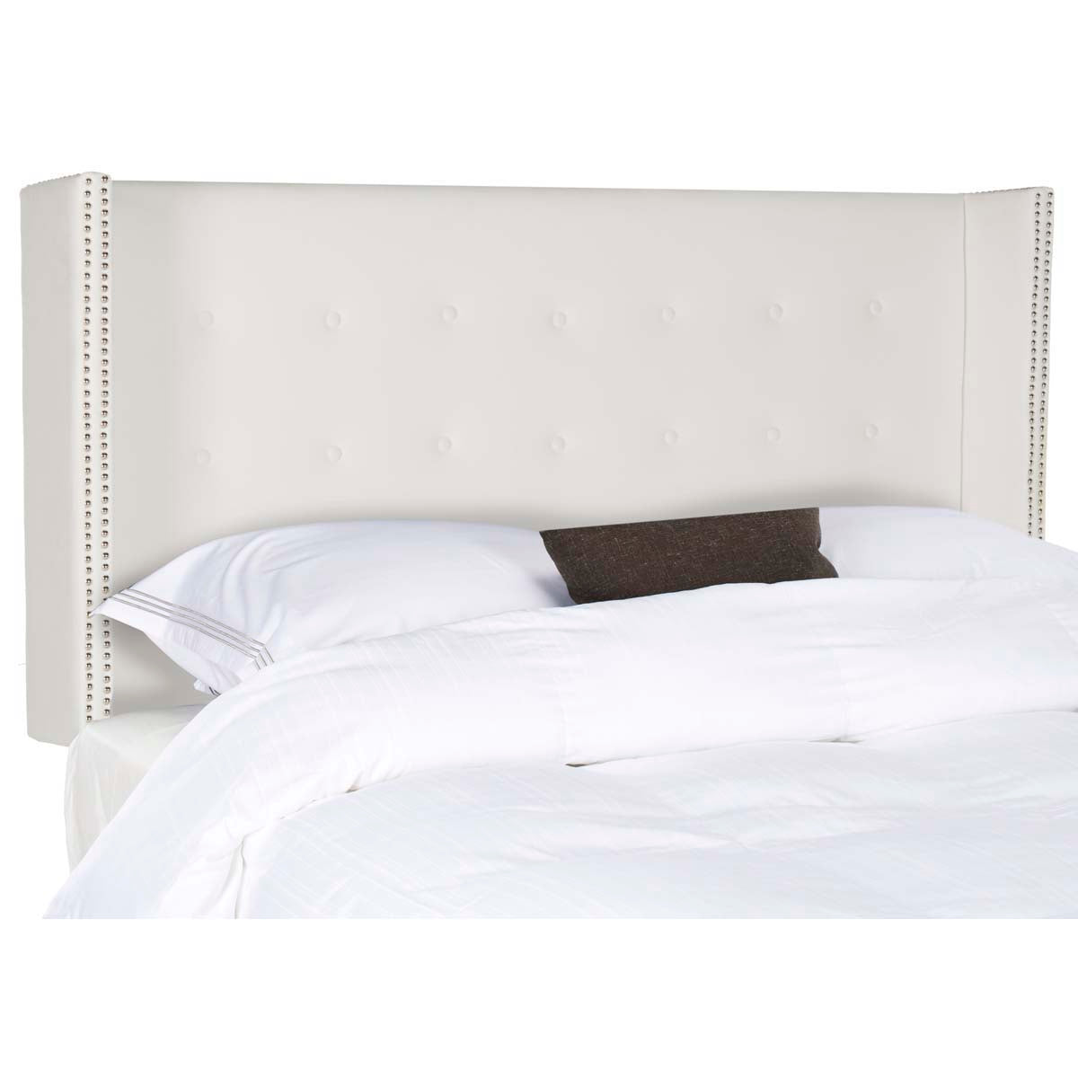 Safavieh Keegan White Velvet Tufted Winged Headboard - Silver Nail Head - White