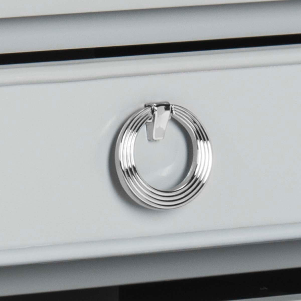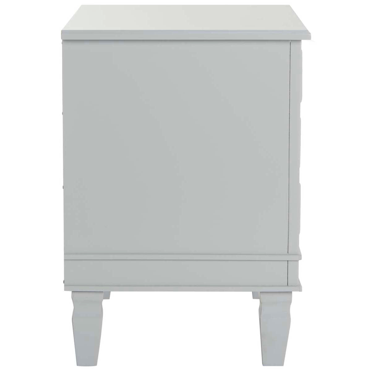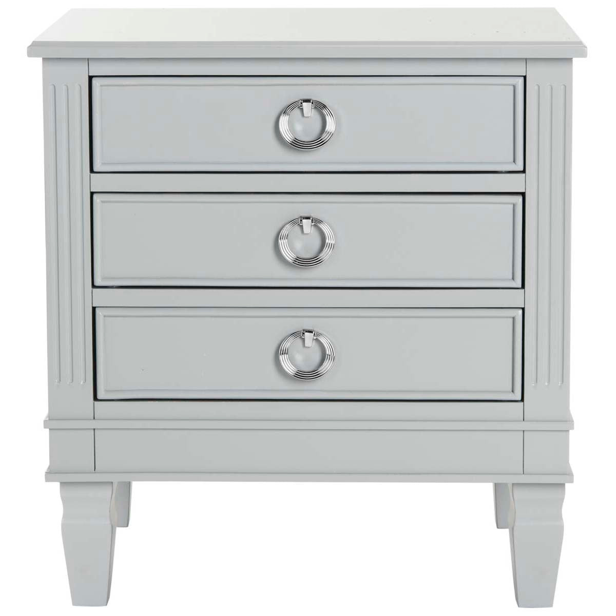 Bring the charm of the legendary Paris??brocantes to any space with this classic nightstand. Crafted with French style wood details and chic silver pulls on its ample three drawers, its quintessential grey hue makes a graceful statement in any boudoir.