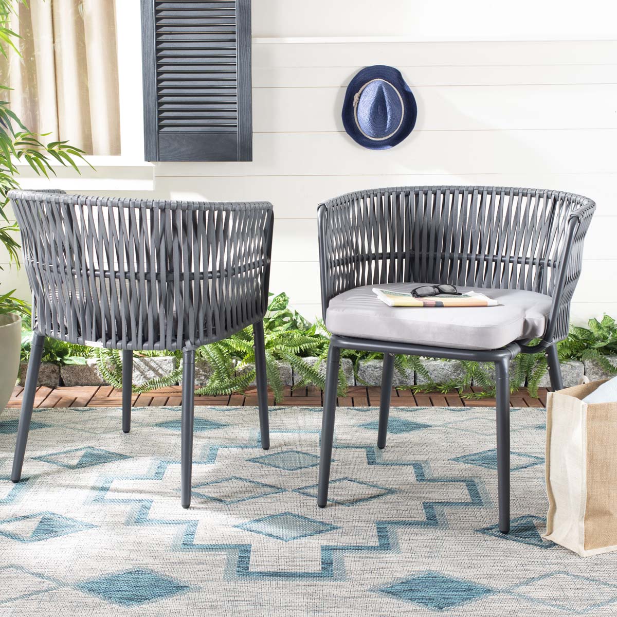 Safavieh Kiyan Rope Chair - Grey/Grey Cushion (Set of 2)