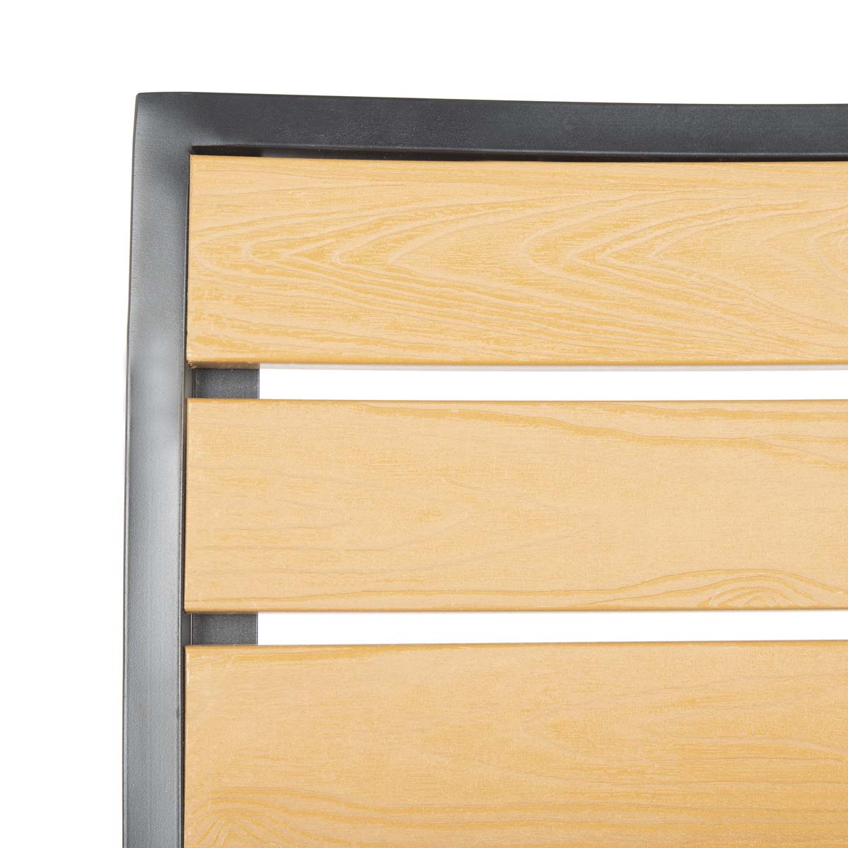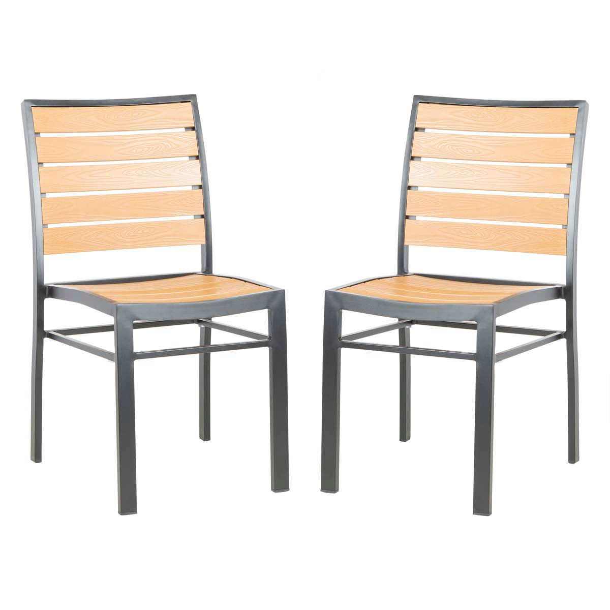 Perfect for transitional and traditional outdoor living spaces, this set of stackable chairs complements any casual d?cor. Its black frame and light brown wood panels create a neutral look that fits in any patio or deck.