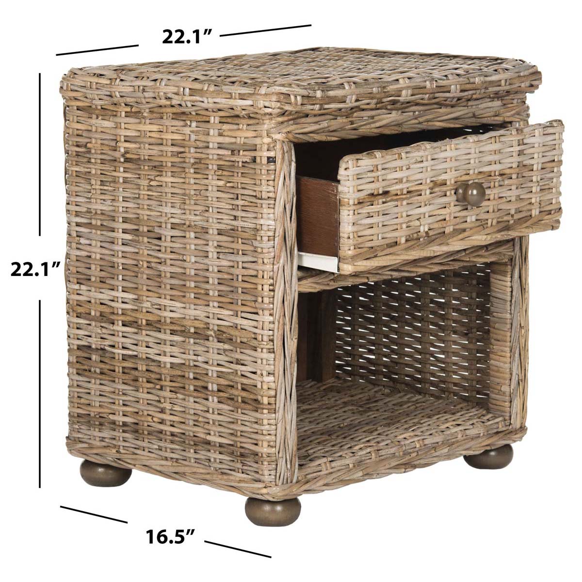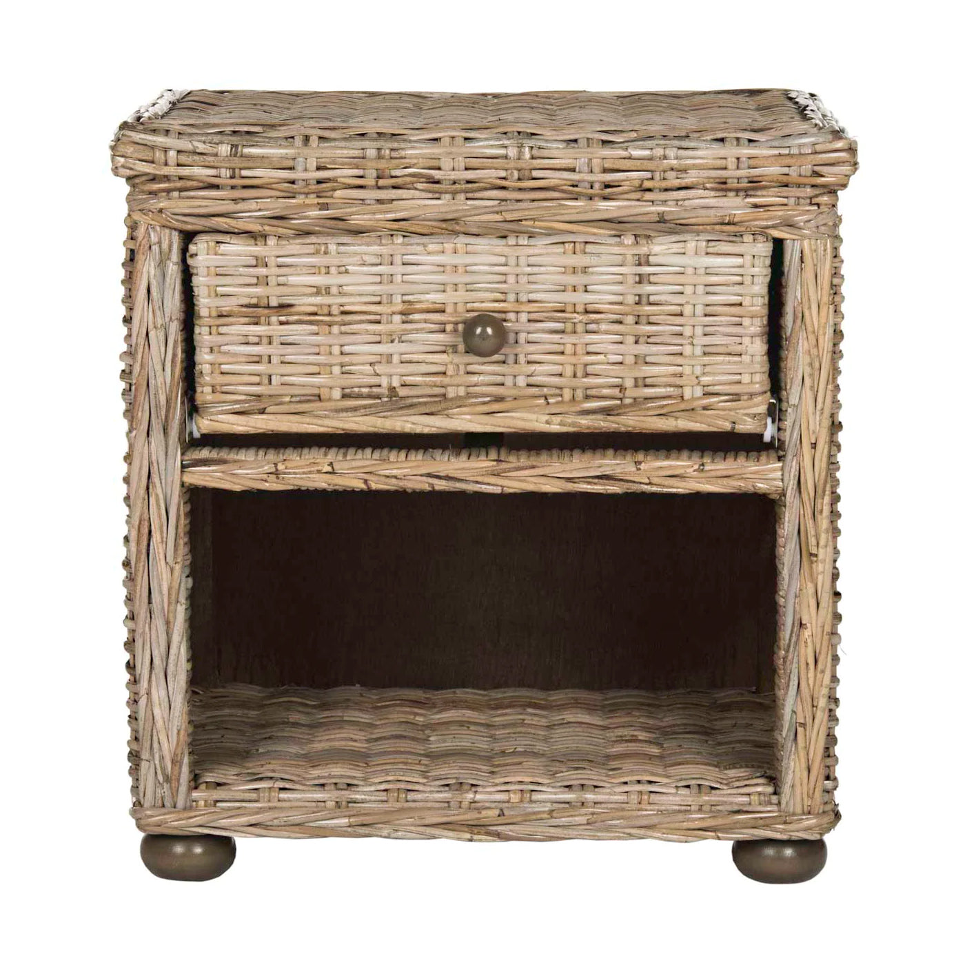 Safavieh Lagos Natural Grey Wicker Nightstand With Drawer And 8H Storage - Grey