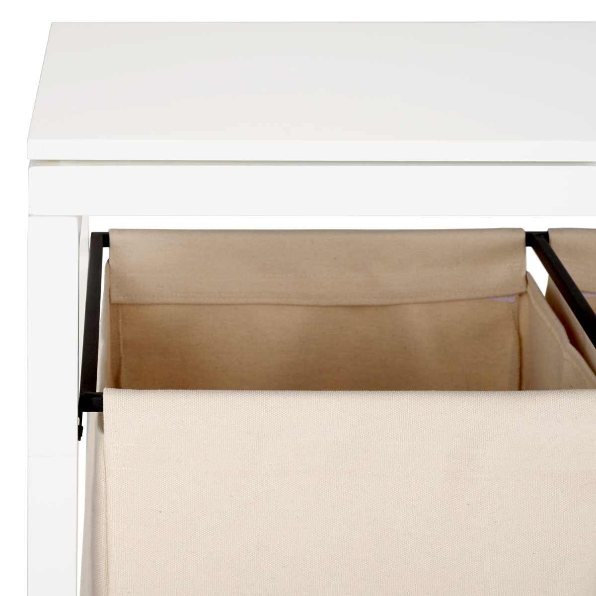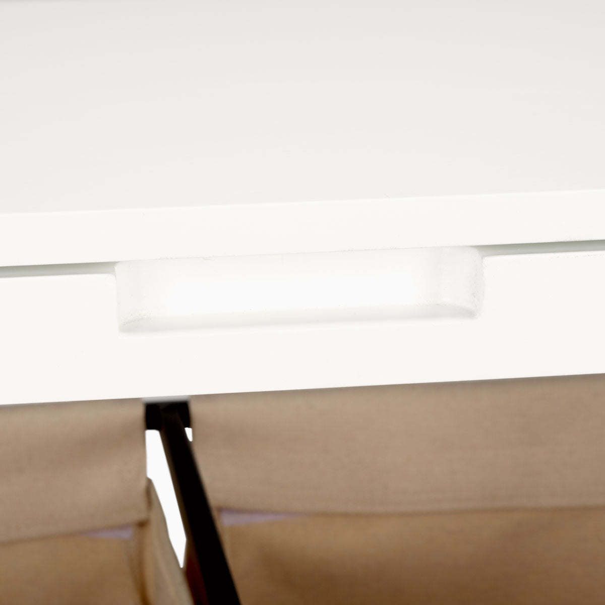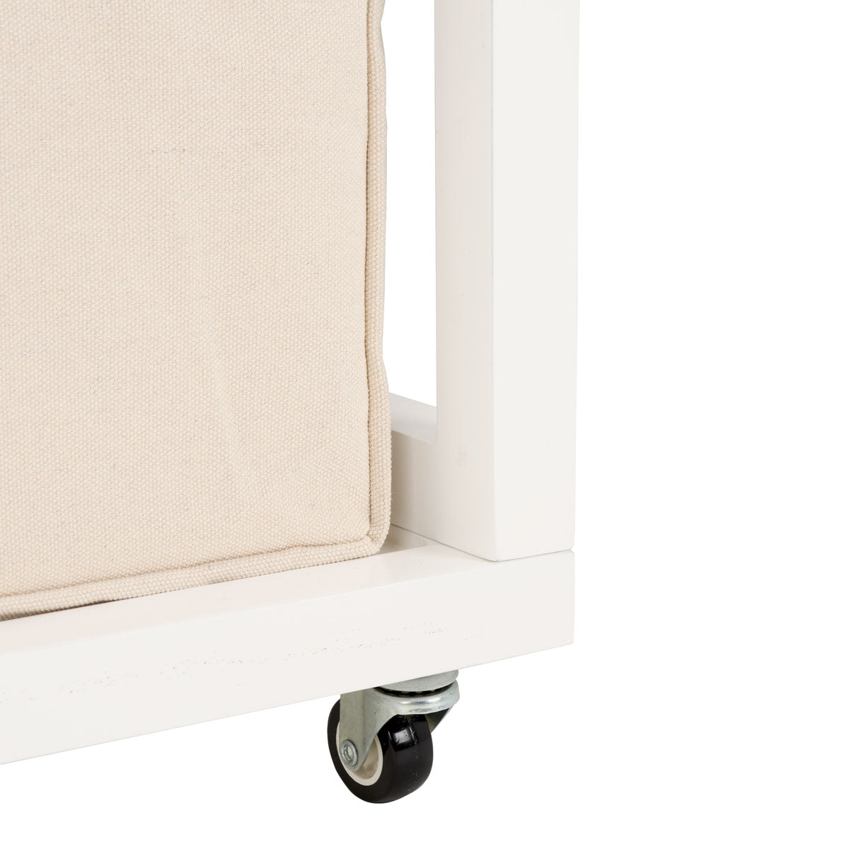 Keep each room tidy and organized with our versatile and roomy Leanna laundry basket. The beige laundry bag sits underneath a white wooden frame to vouch for a sleek and elegant look. The basket offers convenience with two roomy compartments enabling you to sort and organize all your clothes and linens. Both functional and versatile, the laundry basket can complement any setting, featuring as your perfect laundry companion.