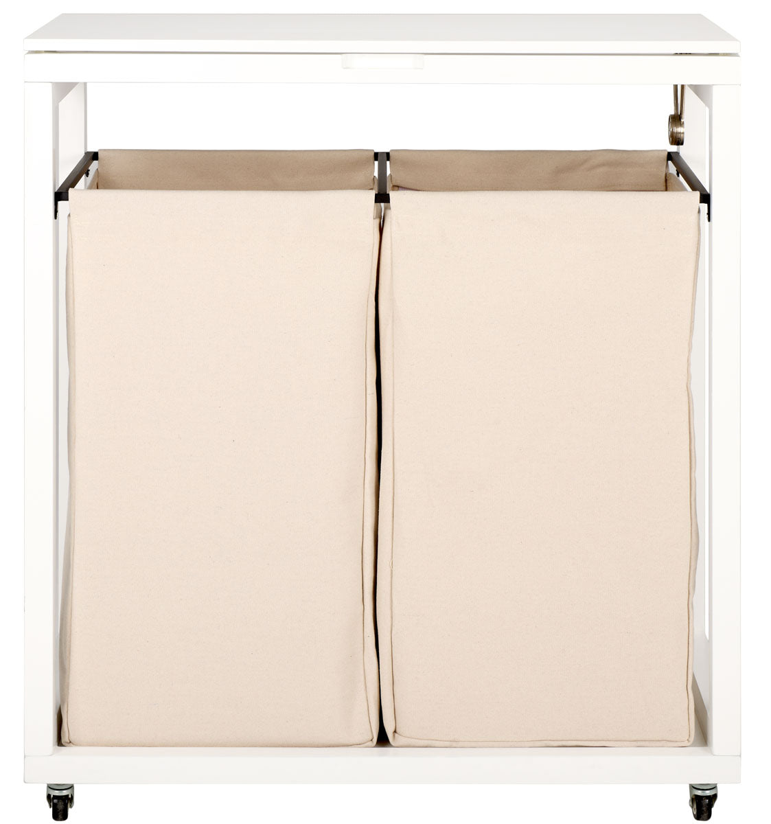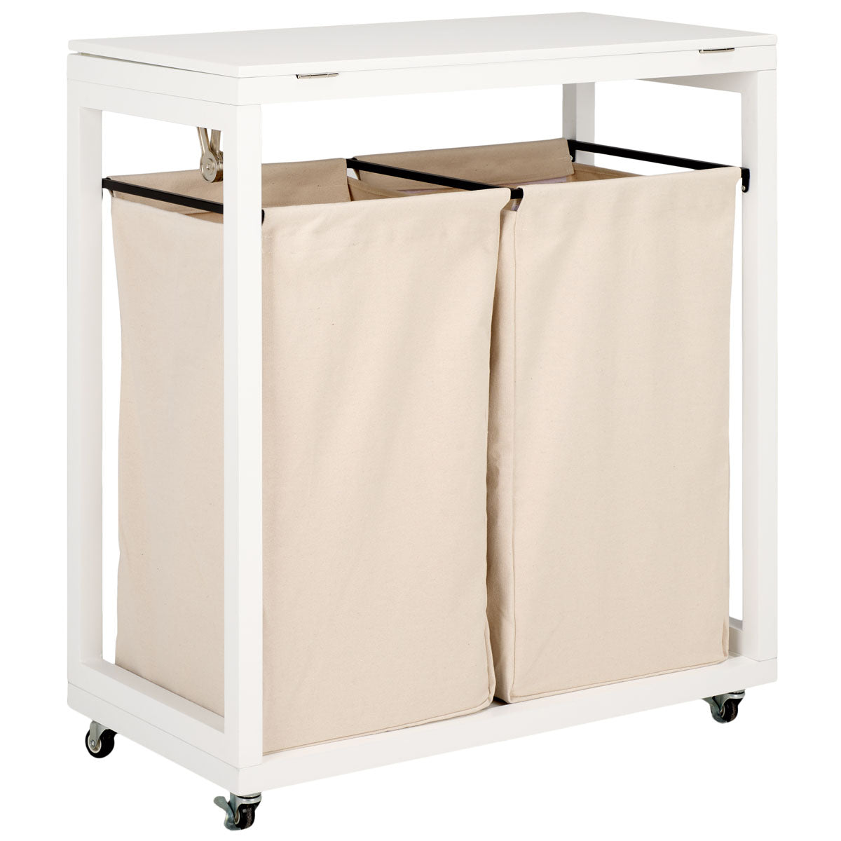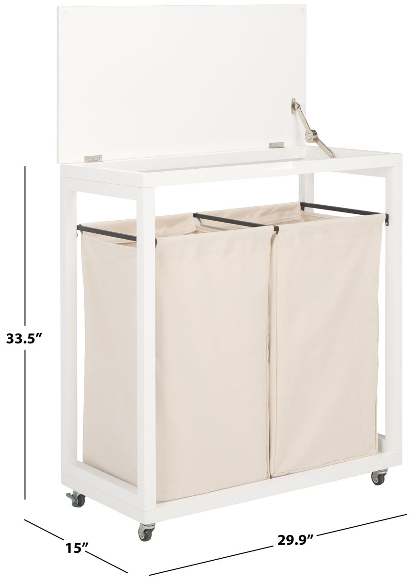 Keep each room tidy and organized with our versatile and roomy Leanna laundry basket. The beige laundry bag sits underneath a white wooden frame to vouch for a sleek and elegant look. The basket offers convenience with two roomy compartments enabling you to sort and organize all your clothes and linens. Both functional and versatile, the laundry basket can complement any setting, featuring as your perfect laundry companion.