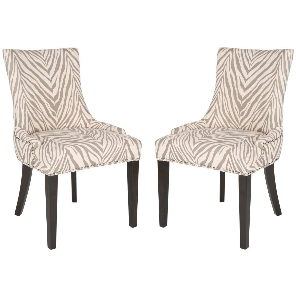 Safavieh Lester 19''H Dining Chair (Set Of 2) Silver Nail Heads-Grey Zebra