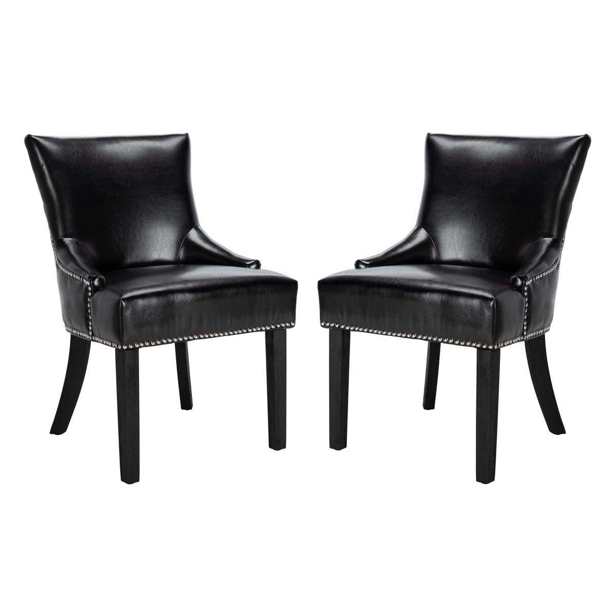 Safavieh Lotus 19''H Kd Side Chair (Set Of 2) Silver Nail Heads-Black