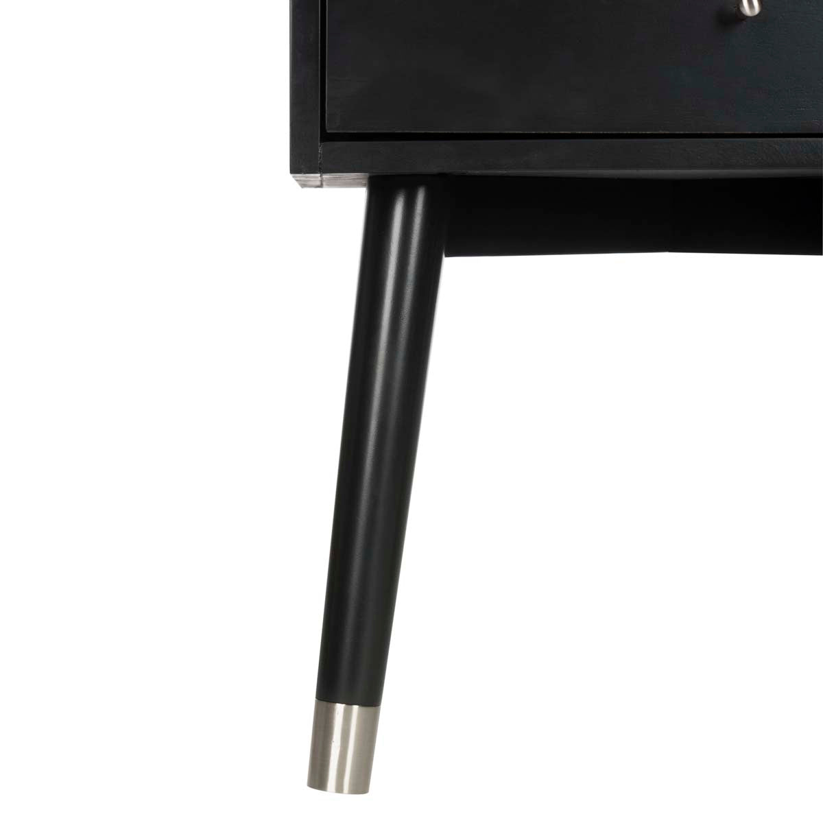 A Mid Century favorite, this Lyla Two Drawer Nightstand was inspired by vintage Italian designs. Dressed in chic black, the silver metallic accents on its subtly splayed legs bring instant decorative impact to any space.