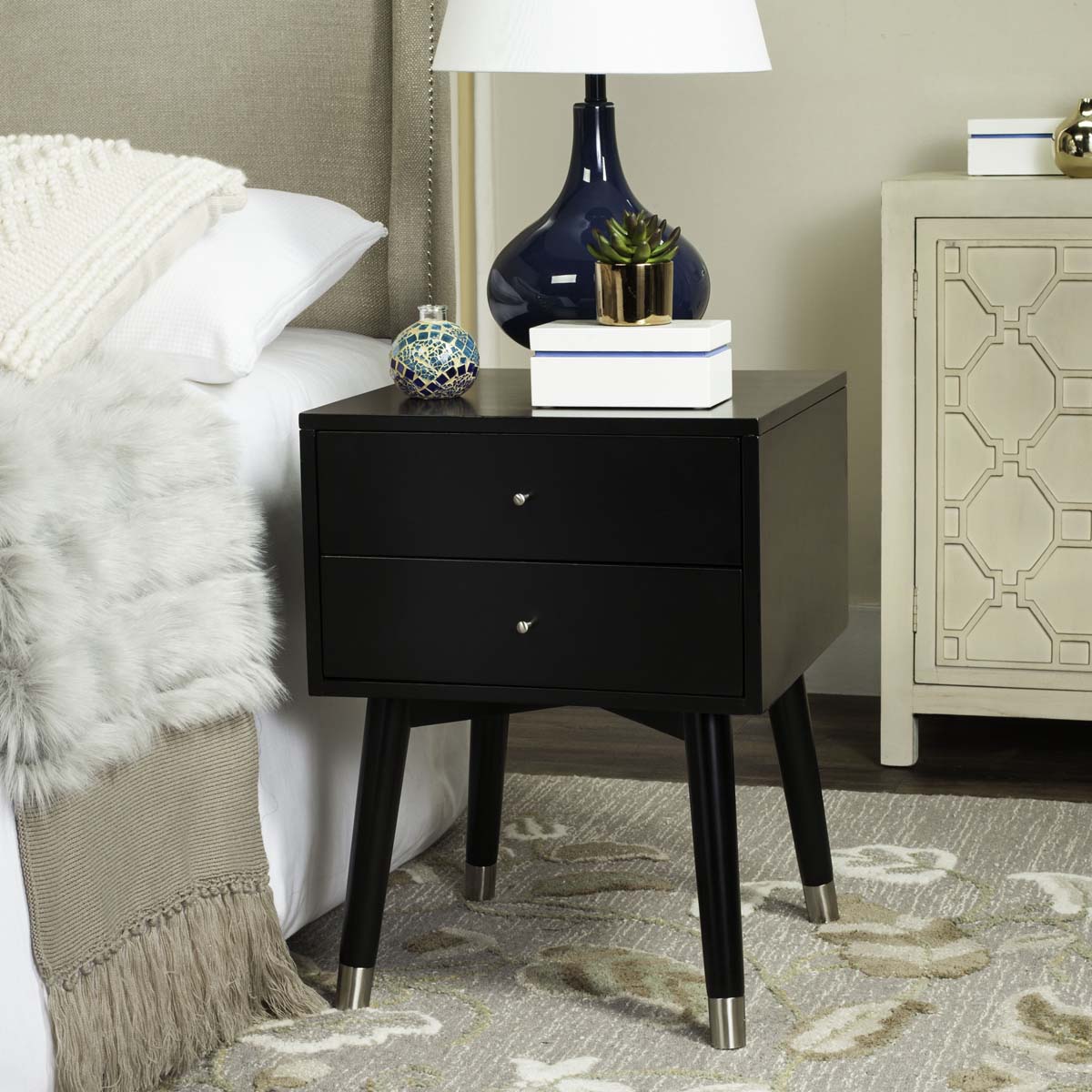 Safavieh Lyla Mid Century Retro Silver Cap Nightstand - Black/Silver