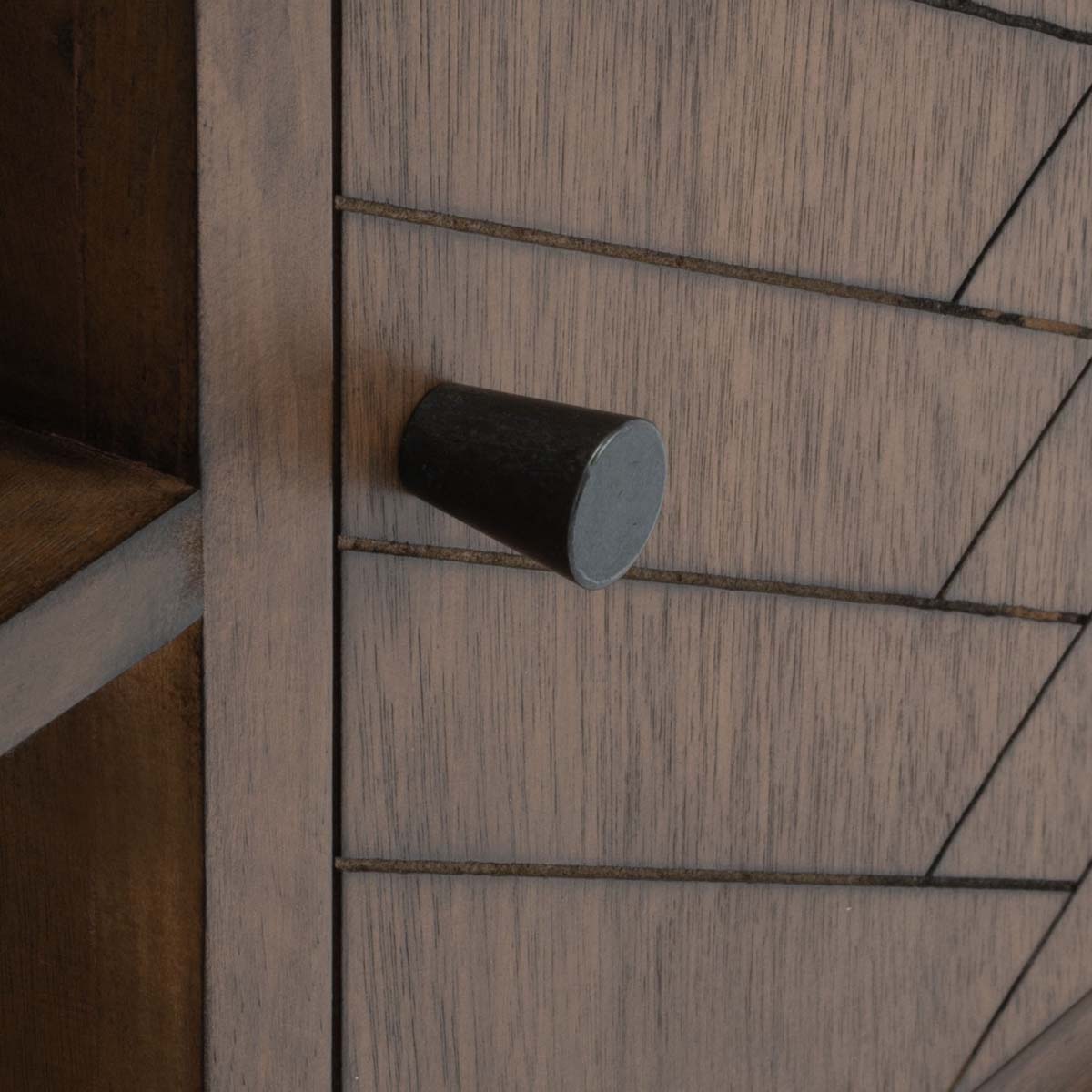 Classic meets contemporary in this Magnolia Media Stand, giving your entertaining space a timeless touch. Magnolia???s turned feet pair beautifully with the oversized herringbone pattern on its two doors, and two shelves provide space for consoles or electronics. A rich brown finish completes the look.