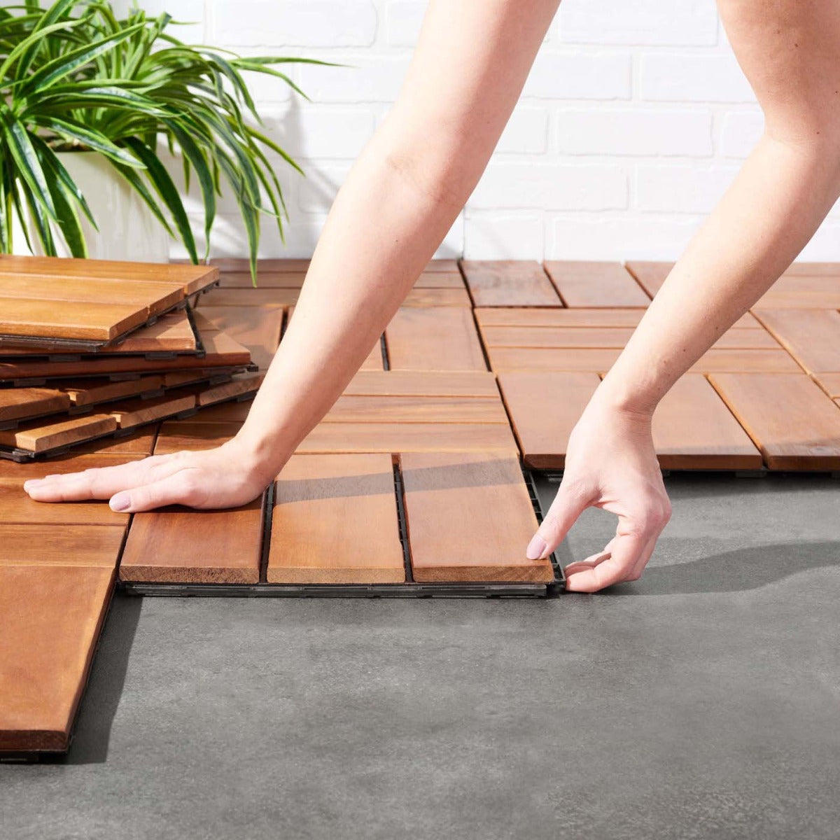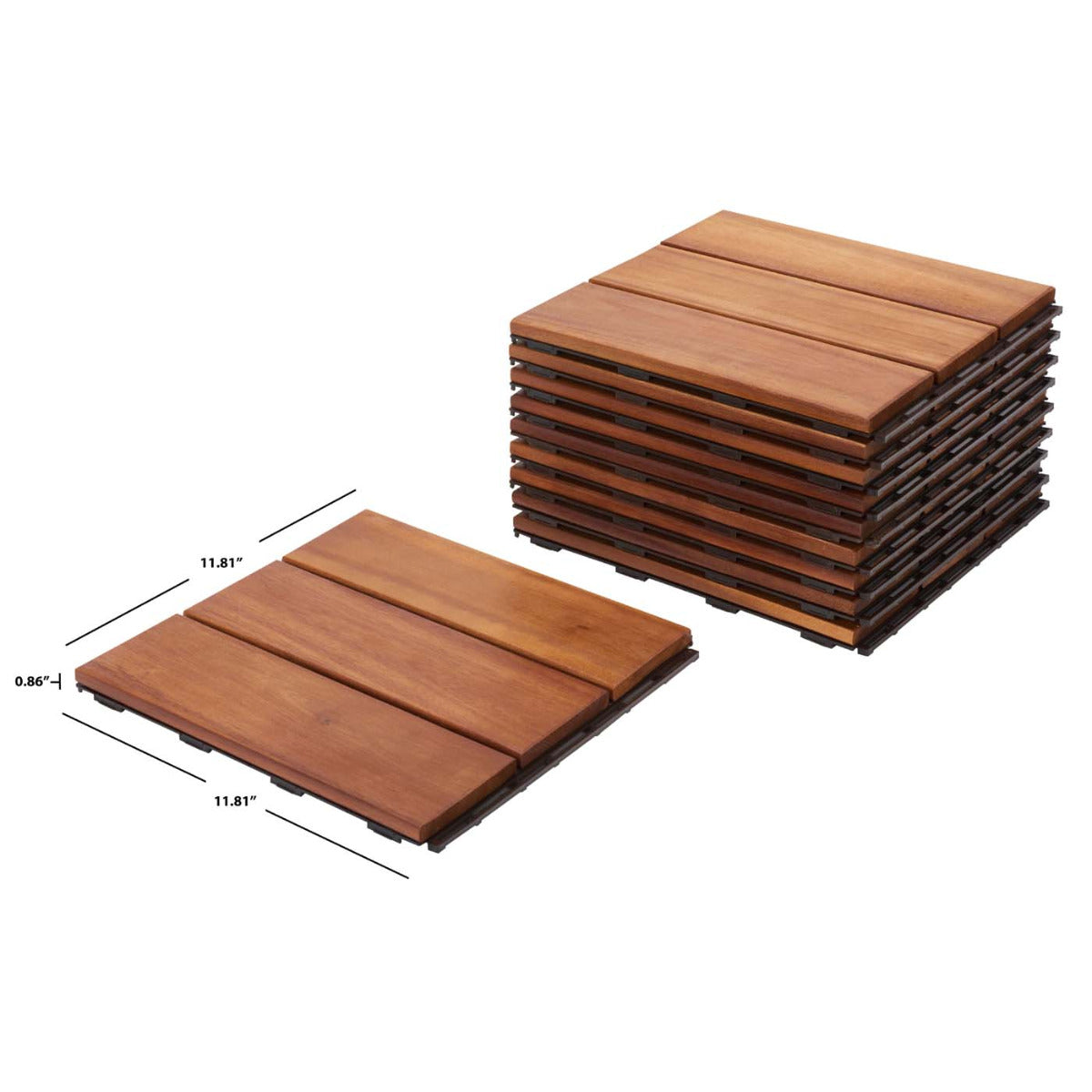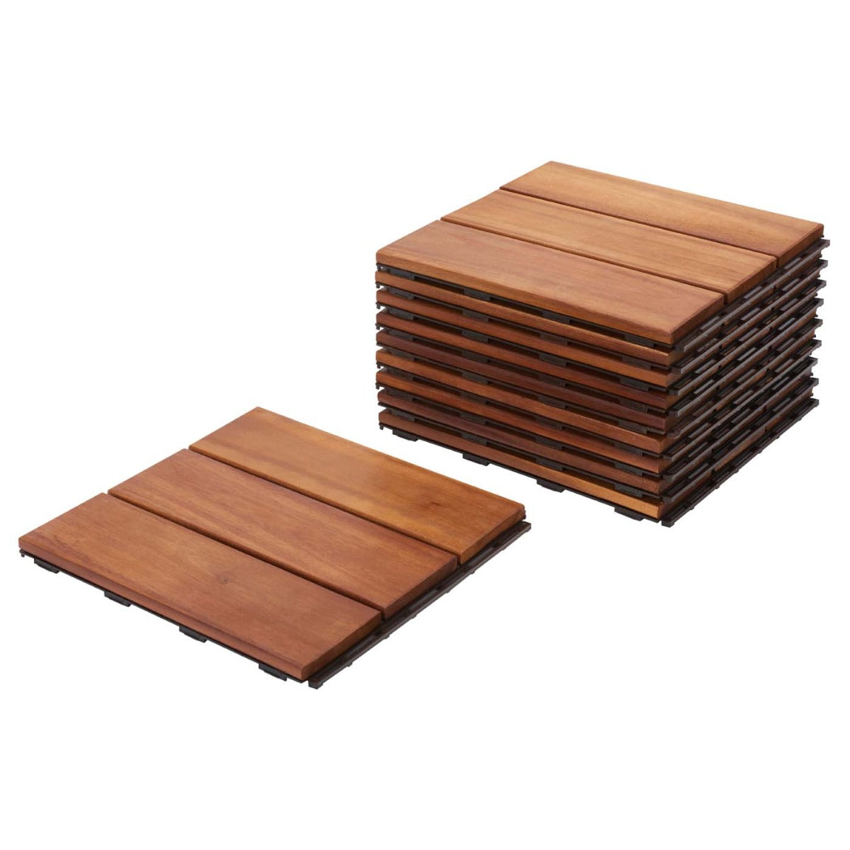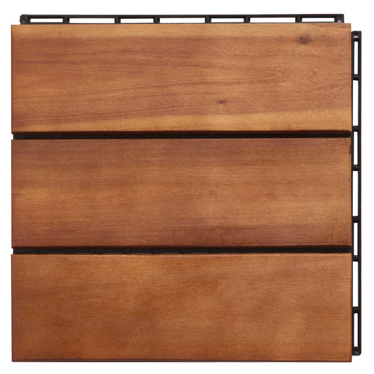 Refresh your old concrete patio and give it a chic finished look with these fabulous Manila Wooden Floor Tiles. Perfectly designed to interlock in any configuration to suit your decorating needs, Manila?? rich natural finish and three-slat design elevate your outdoor space with effortless style. Includes ten tiles.