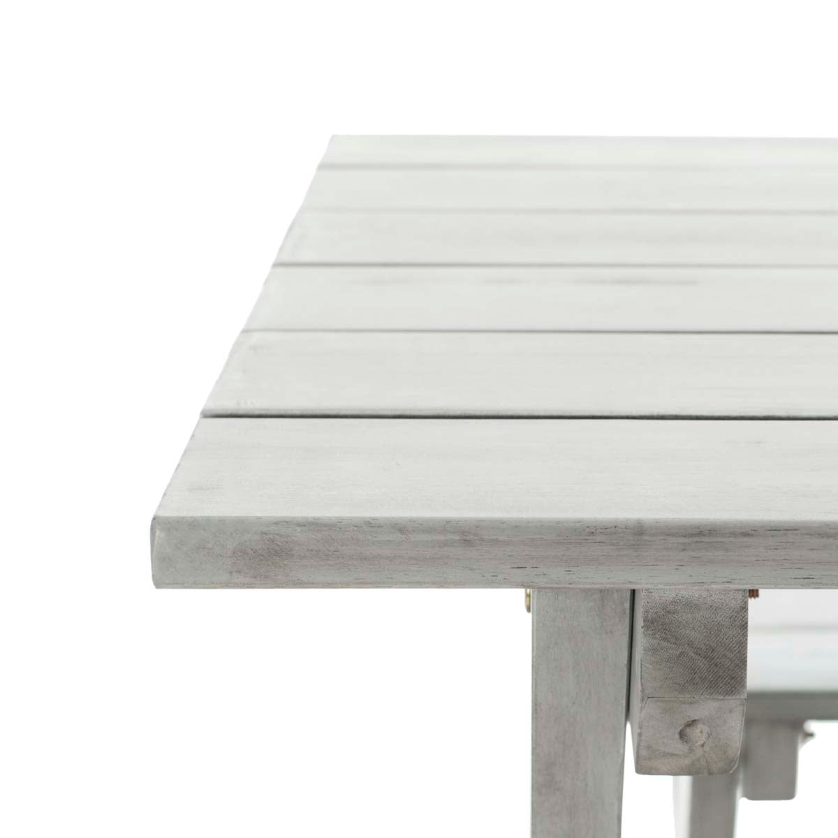 Spontaneous picnics happen with the Marina three piece outdoor set, a backyard adaptation of a favorite look at the beach or yacht dock. Crafted of sustainable acacia wood in distressed grey with white legs, it makes alfresco dining a breeze.