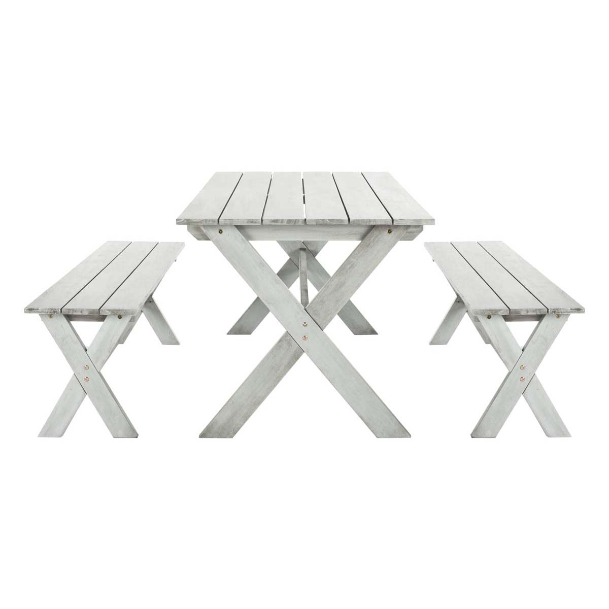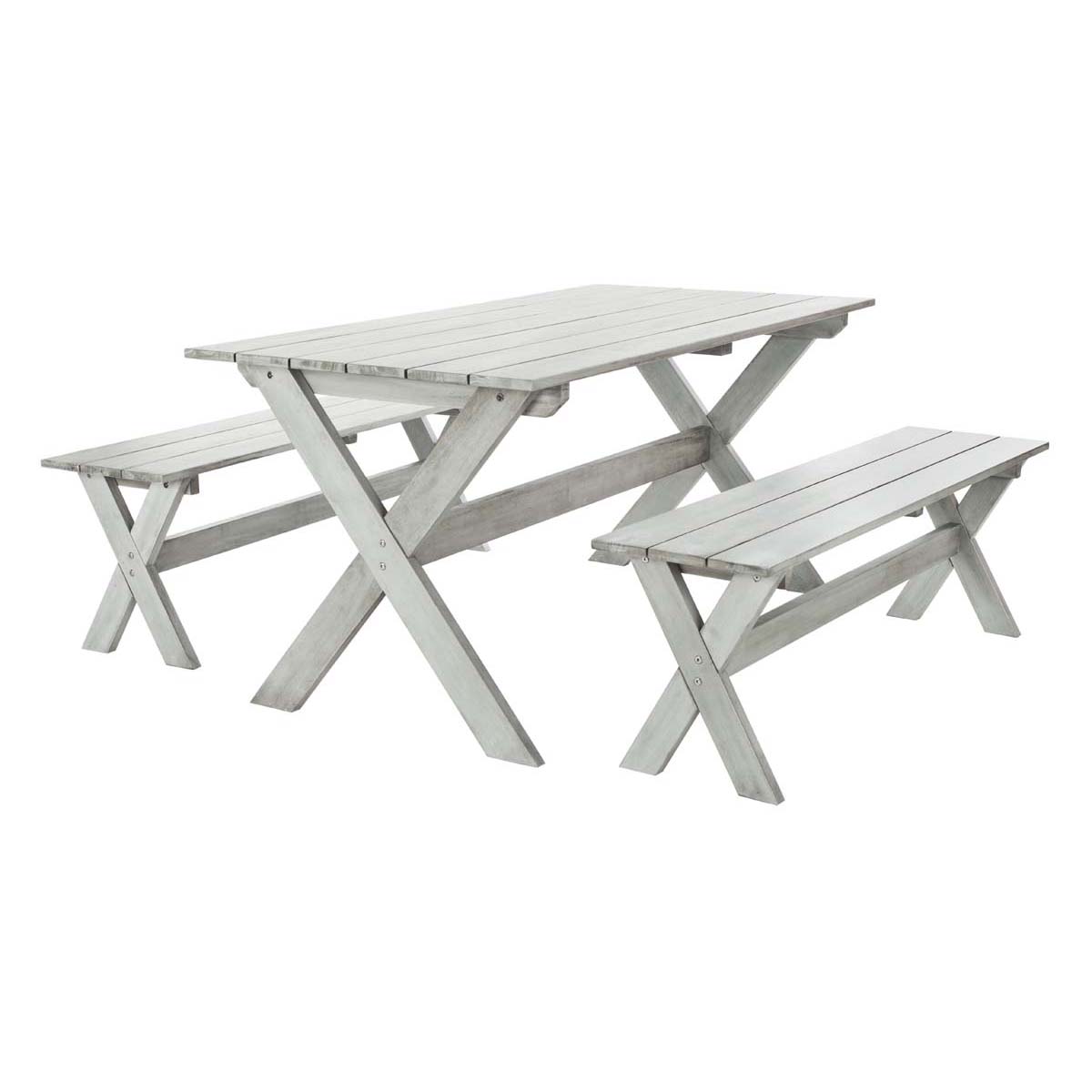 Safavieh Marina 3 Piece Dining Set With 63-Inch L Table And 2 Backless Benches - Grey Wash