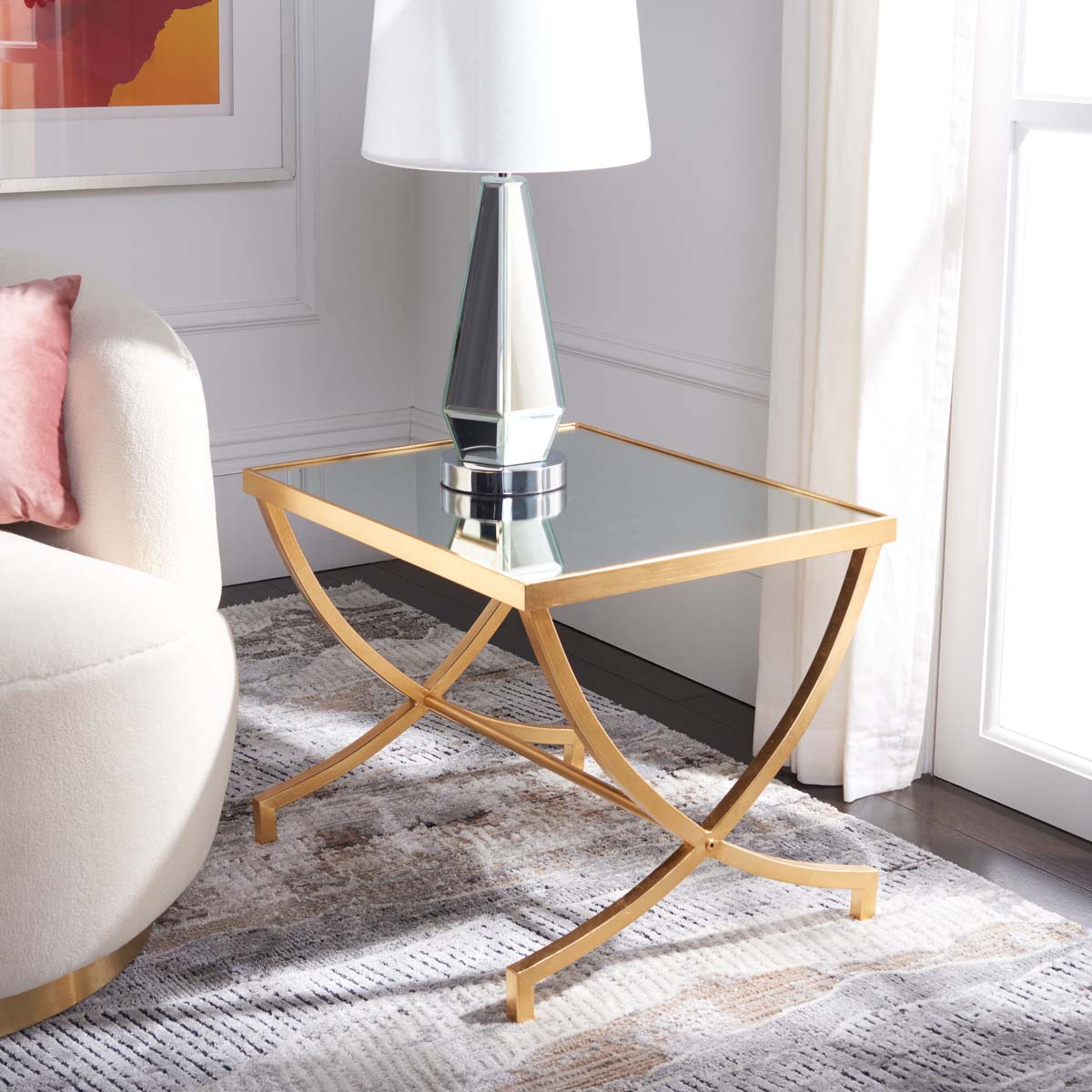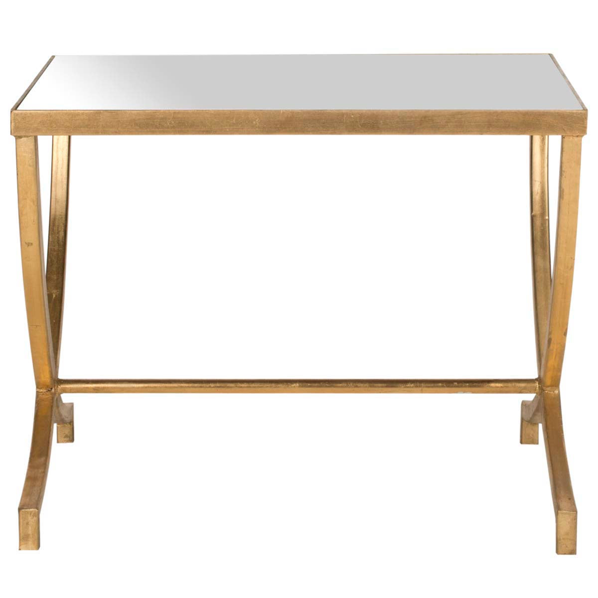Safavieh Maureen Glass Top Gold Leaf Accent Table - Gold/Mirror
