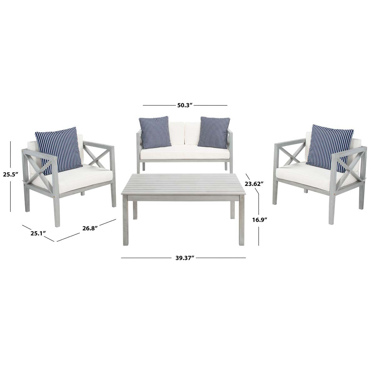 Safavieh Nunzio 4 Pc Outdoor Set With Accent Pillows - Grey/Beige