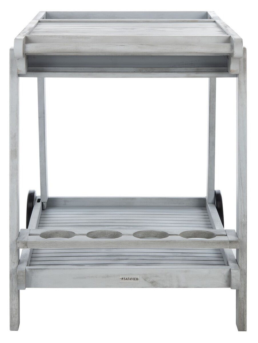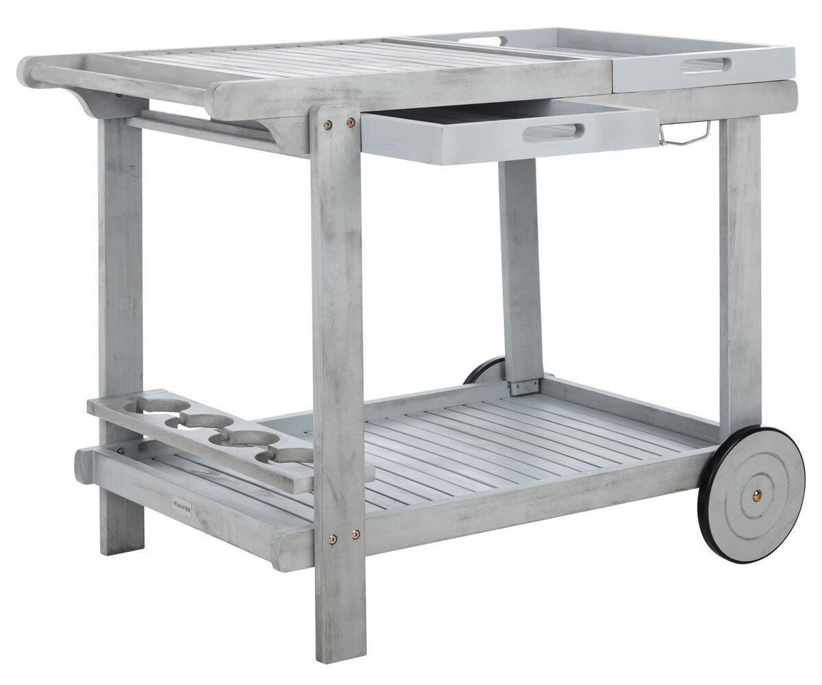 Backyard barbecue chefs will appreciate the carefree luxury of a portable serving cart like the portable Orland Tea Trolley. Crafted of eco friendly acacia wood in a sleek grey finish, Orland is loaded with amenities like glass holders, a drawer, and convenient serving tray.