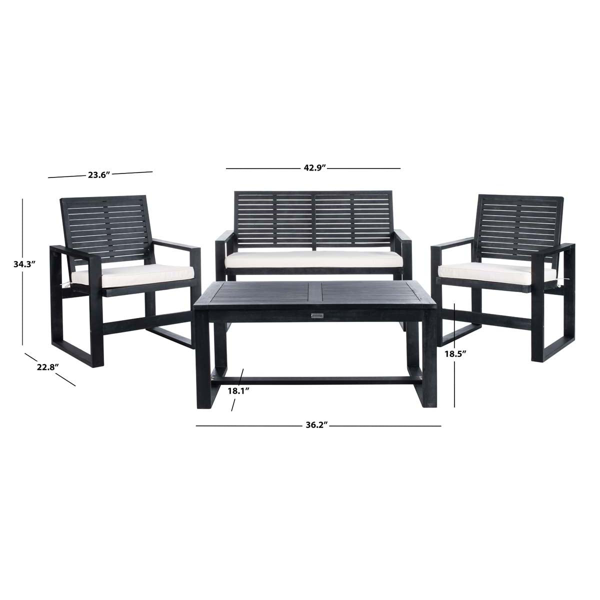 Safavieh Ozark 4 Pc Outdoor Living Set-Black Wash