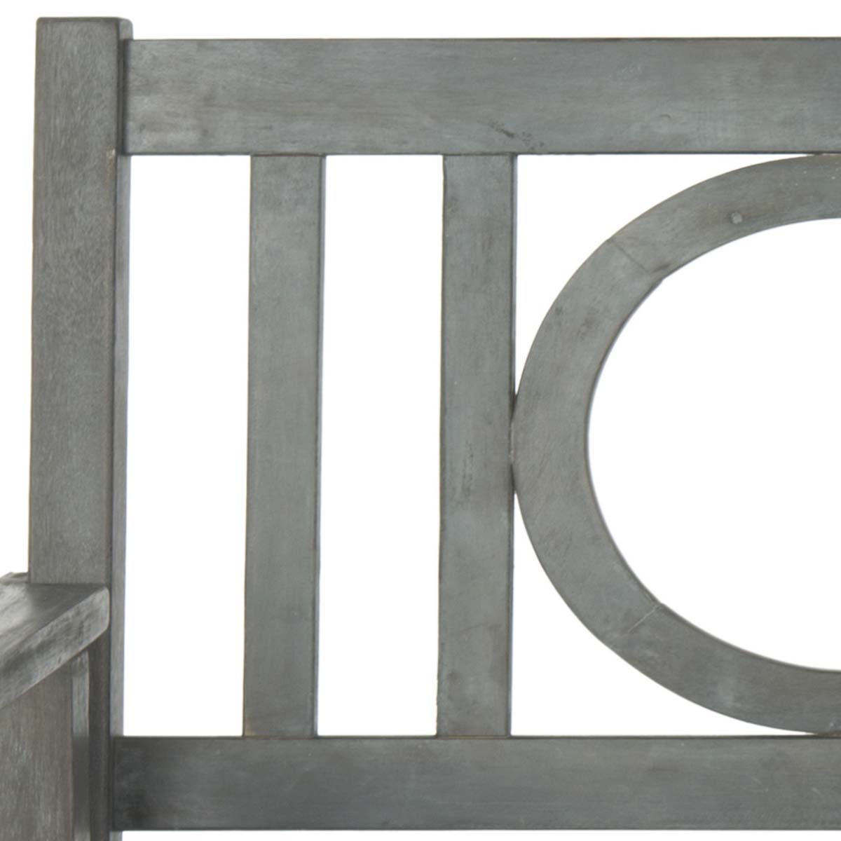 Pretty and practical, the Piedmont folding bench is a contemporary update of classic British garden seating. Circle insets distinguish a slatted seat back crafted of sustainable acacia wood in an ash grey finish, and seat slats insure quick drainage.