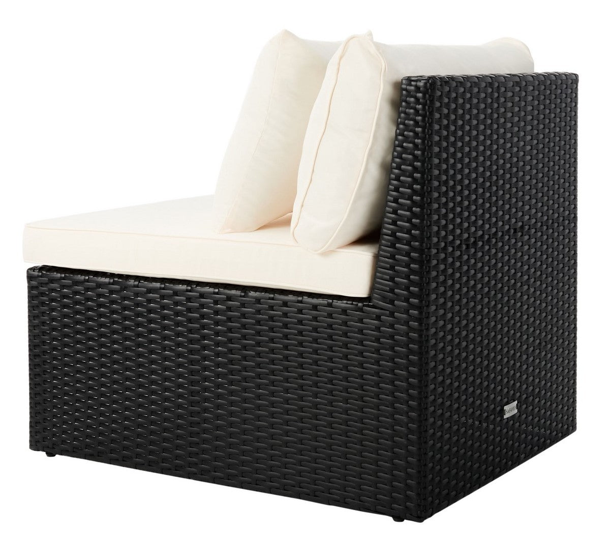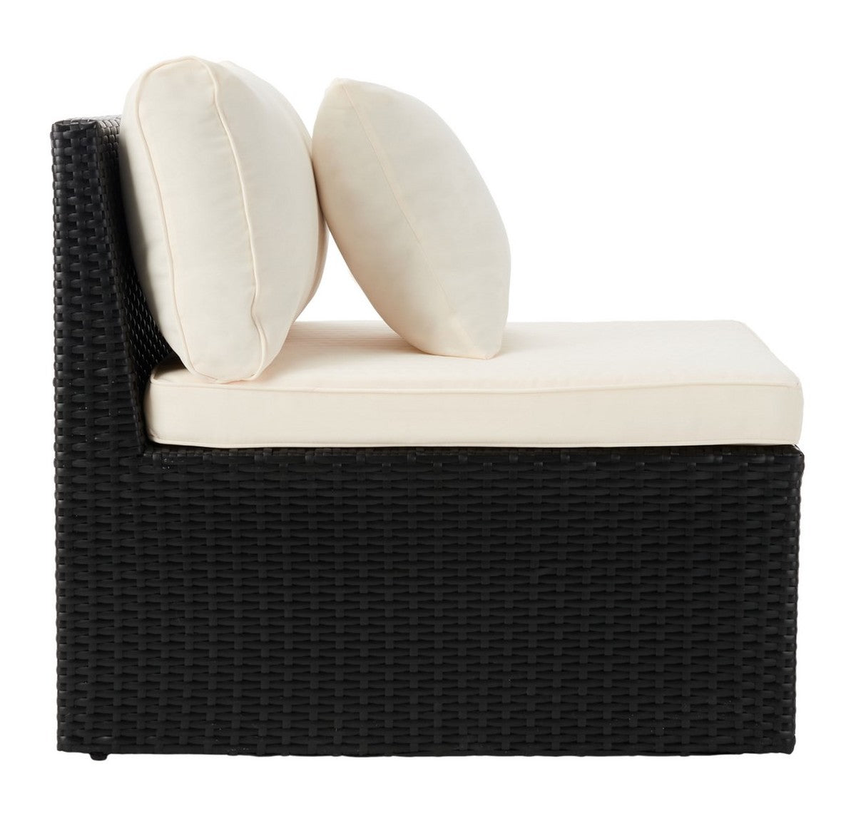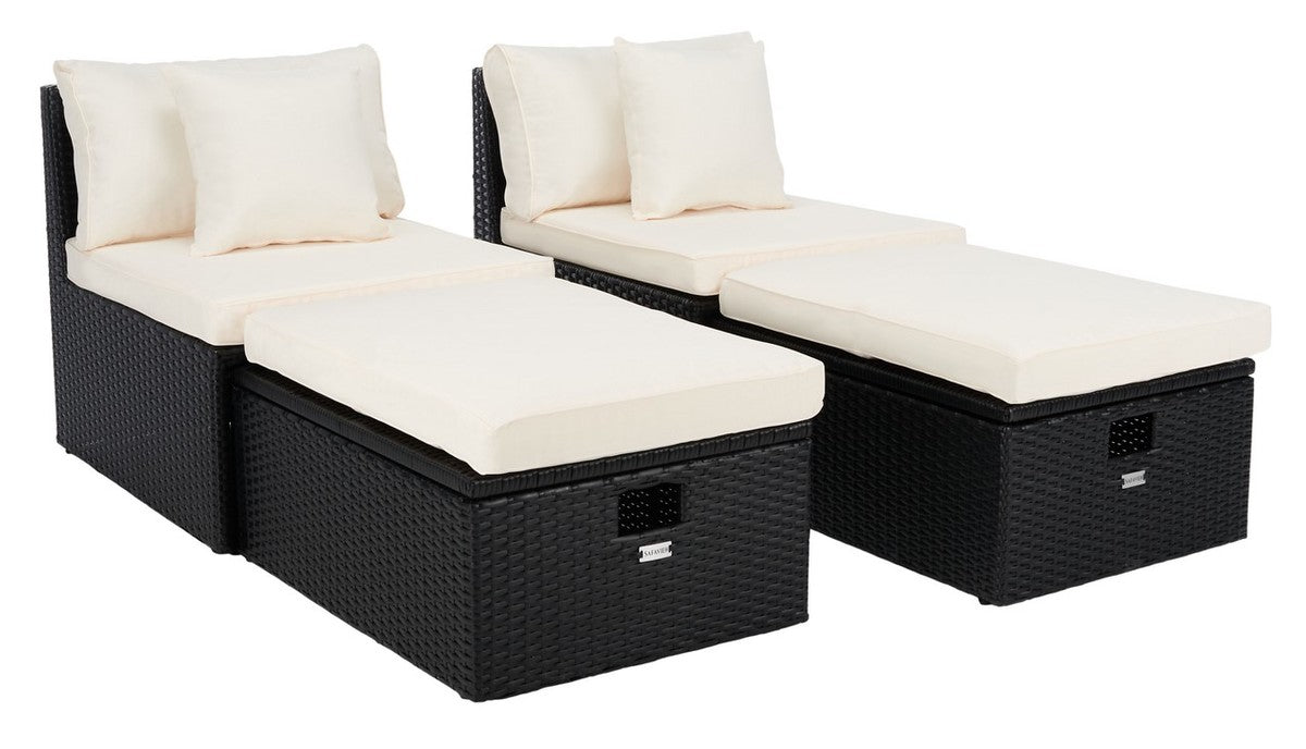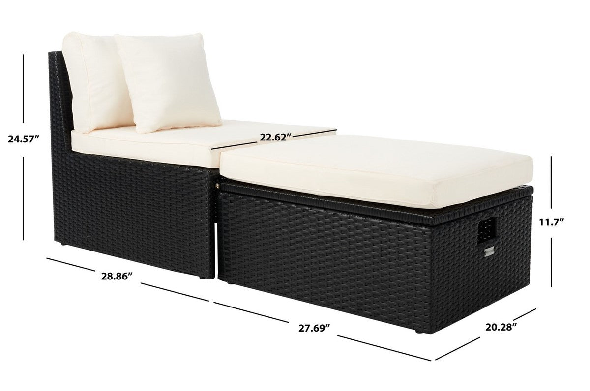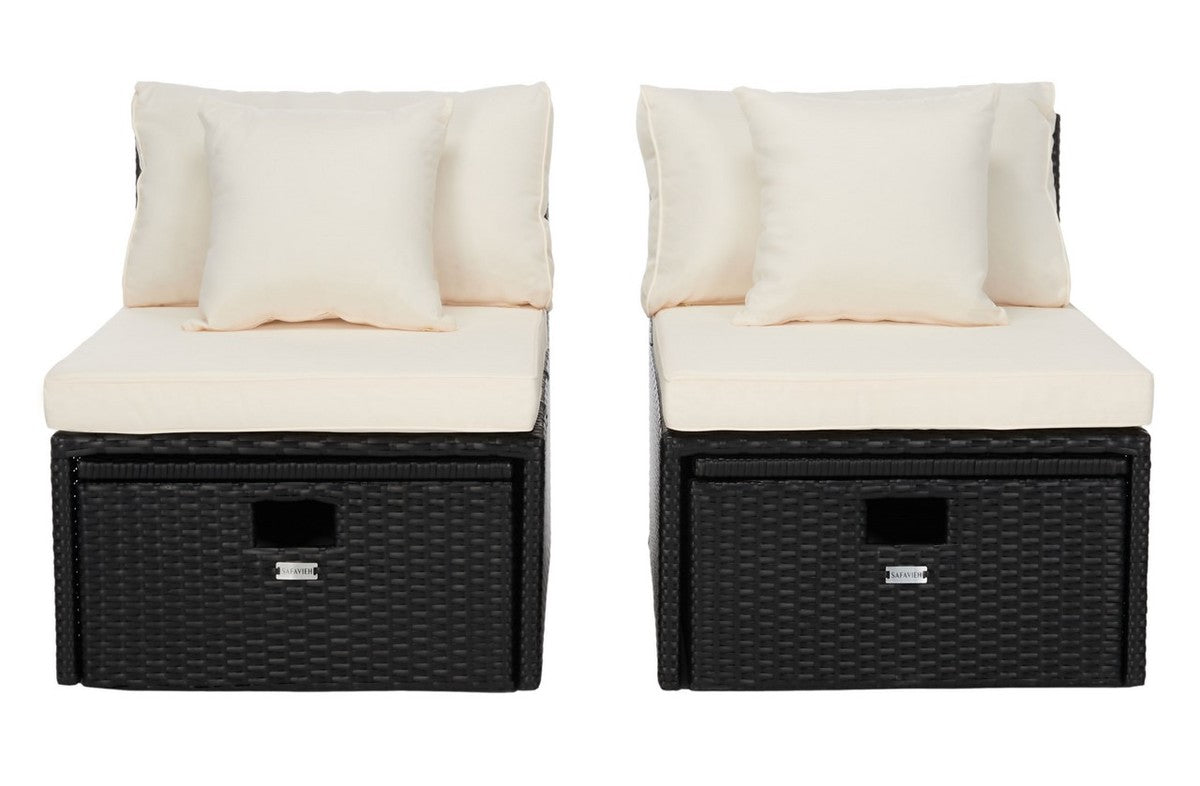 Safavieh Pramla Outdoor Settee With Ottoman - Black/Beige (Set of 2)