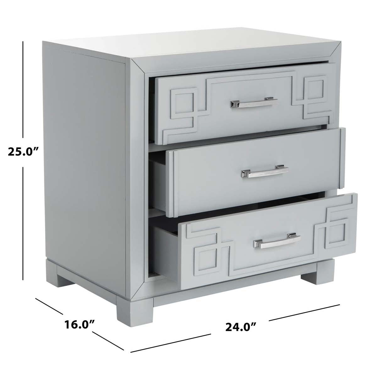 Safavieh Raina Three Drawer Greek Key Night Stand - Grey