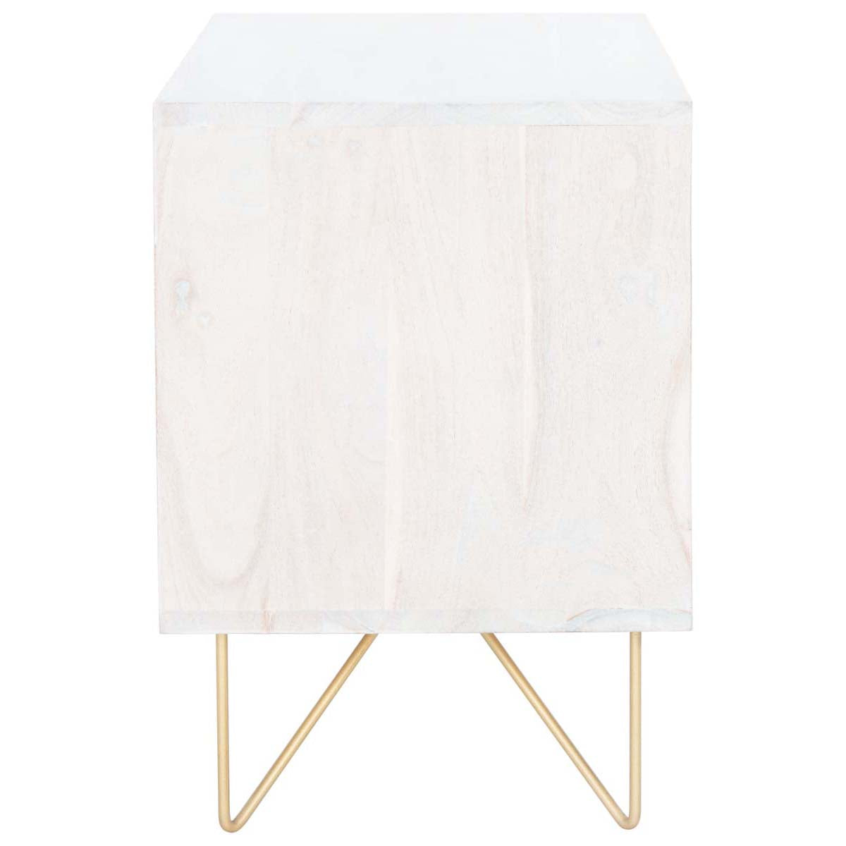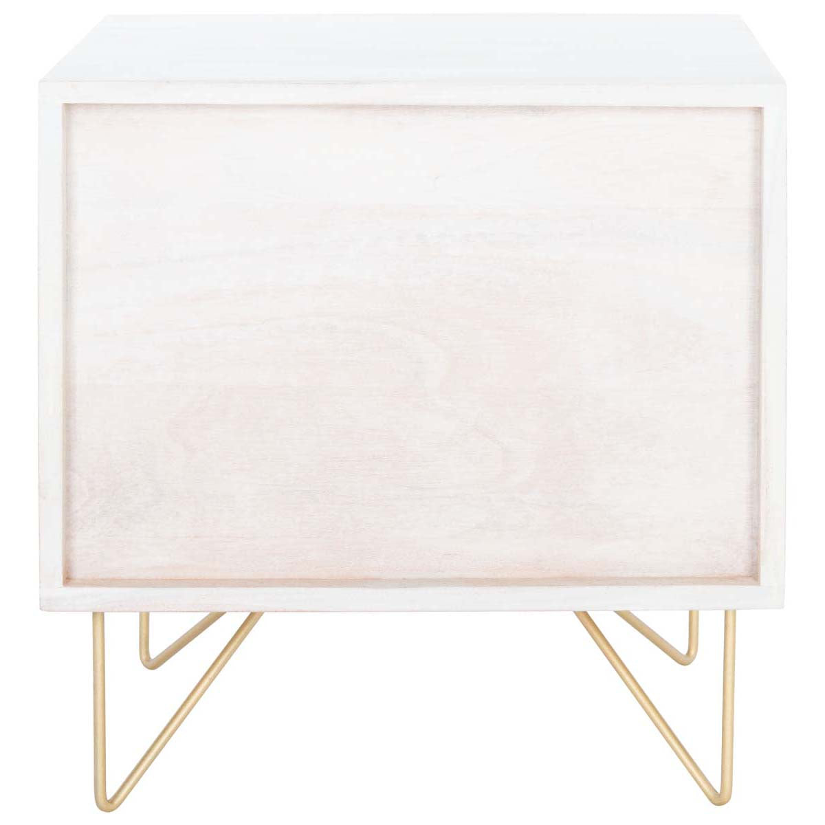 Transform any bedroom into a luxurious retreat with this contemporary Raveena Nightstand. Raveena's carved honeycomb pattern makes a bold style statement with shining brass accents that beautifully pair with its matching hairpin legs, while an open shelf provides plentiful storage with airy appeal.