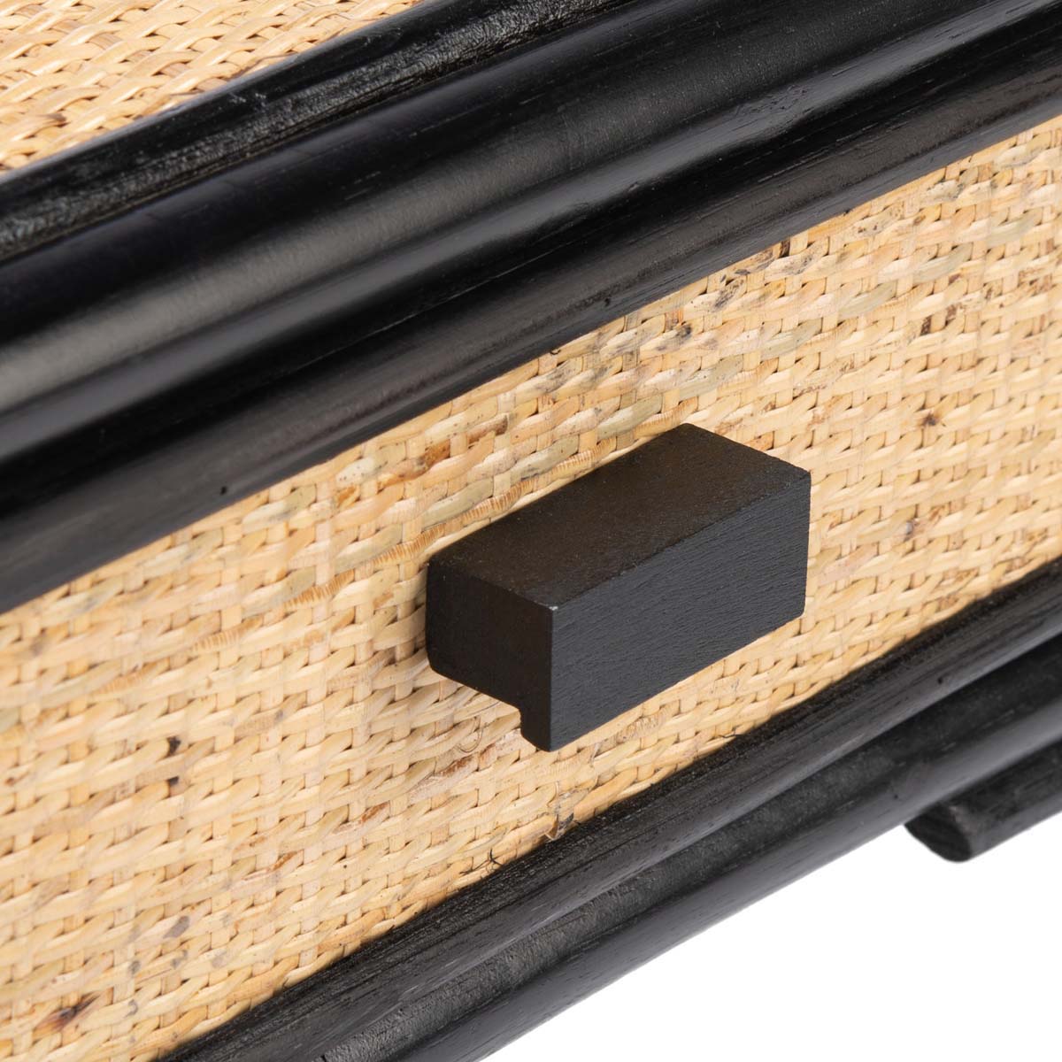 British Colonial style is reimagined for today?? contemporary-coastal interiors in this Roya Nightstand. Roya?? bamboo-style frame, open bottom shelf, and natural rattan drawer give it unique visual depth, while a sleek black finish ensures Roya complements any room?? color scheme.