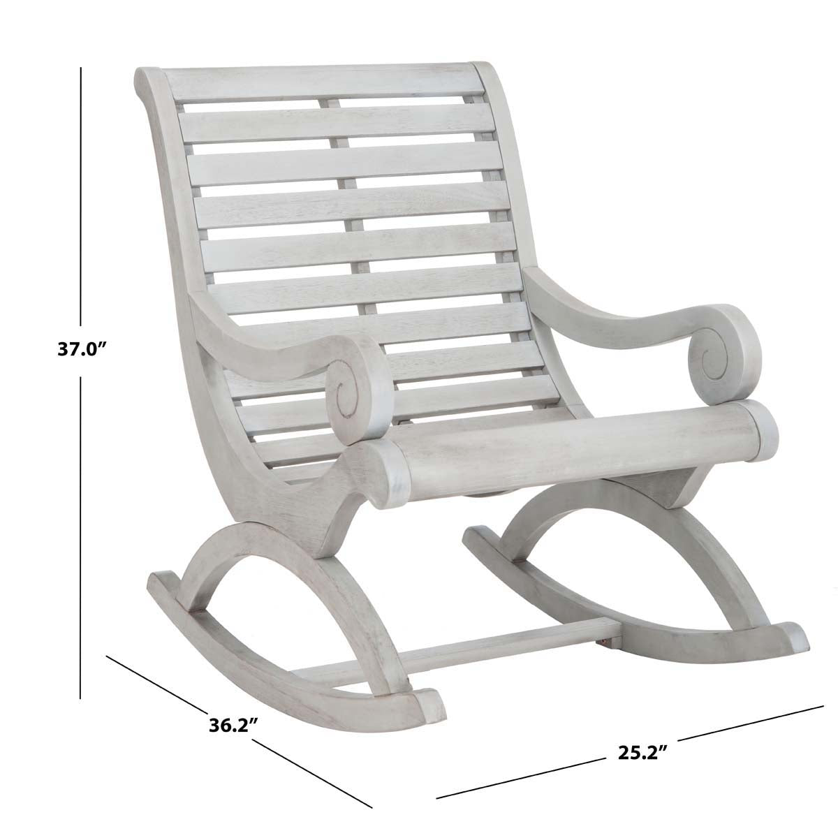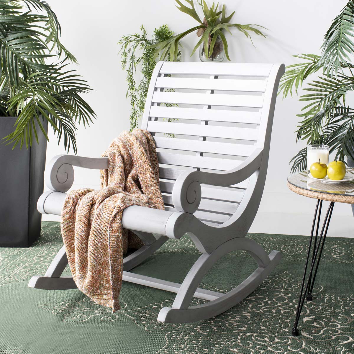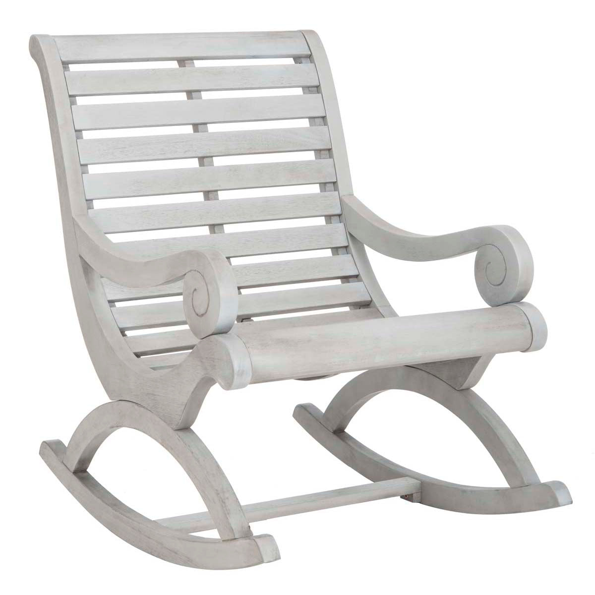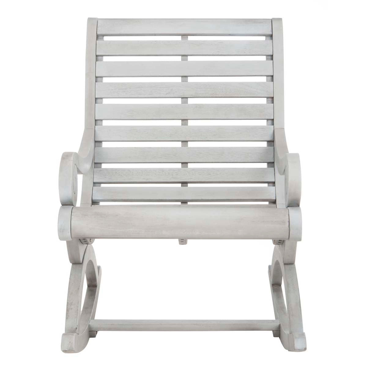 The porch rocker gets a glamour makeover in this outdoor rocking chair with transitional lines that update the profile of a British classic. Crafted of Eucalyptus wood in a natural finish, this piece is perfect reading, dozing or watching a sunset.