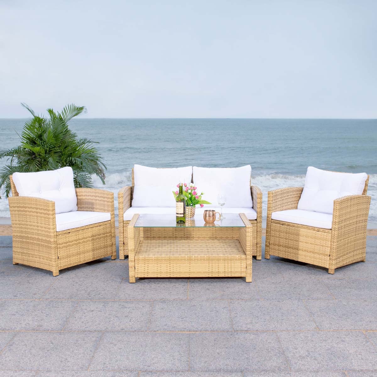 Safavieh Vellor 4 Piece Living Set - Natural / White