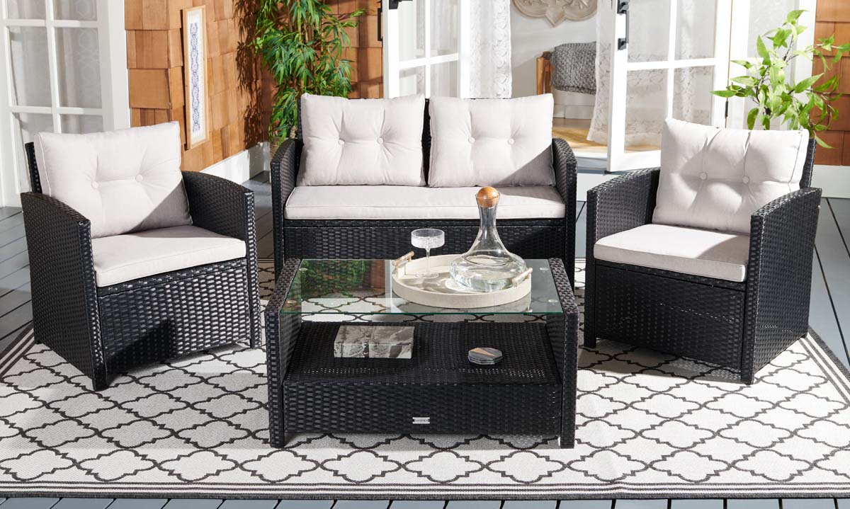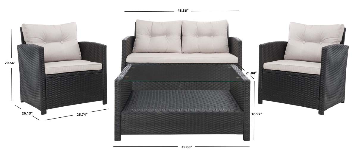 Safavieh Vellor 4Pc Living Set - Black / Light Grey