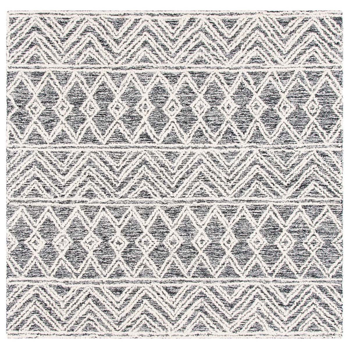 Transform your space with a touch of elegance through our stunning hand-tufted area rug. This rug combines style and comfort with its ivory and black geometric pattern. Crafted from a blend of wool and cotton, its soft texture complements its Bohemian style, bringing an artisanal feel to any room. This rug's geometric design, paired with its origin from India, offers a unique cultural touch. With a height of 1/2 inch, it provides a plush underfoot experience. Enhance your home's aesthetic with this beautiful, carefully crafted rug that seamlessly blends into any decor.