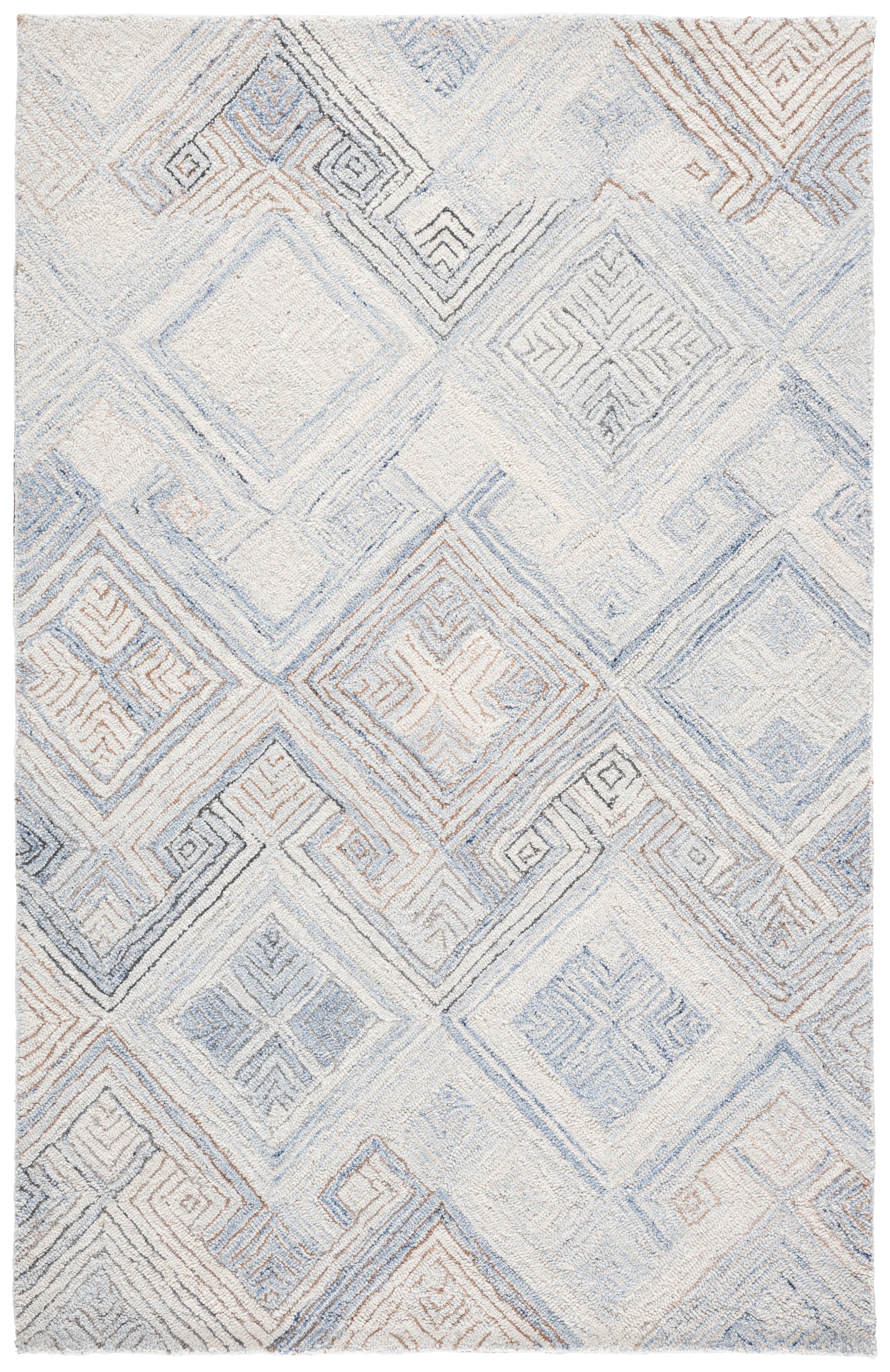 The modern style of this rug is accentuated by its intriguing geometric pattern composed of layered diamonds and angular lines, creating a sense of depth and movement within your space. This sophisticated design makes it an ideal choice for contemporary and minimalist decors looking to add texture and a subtle visual interest.