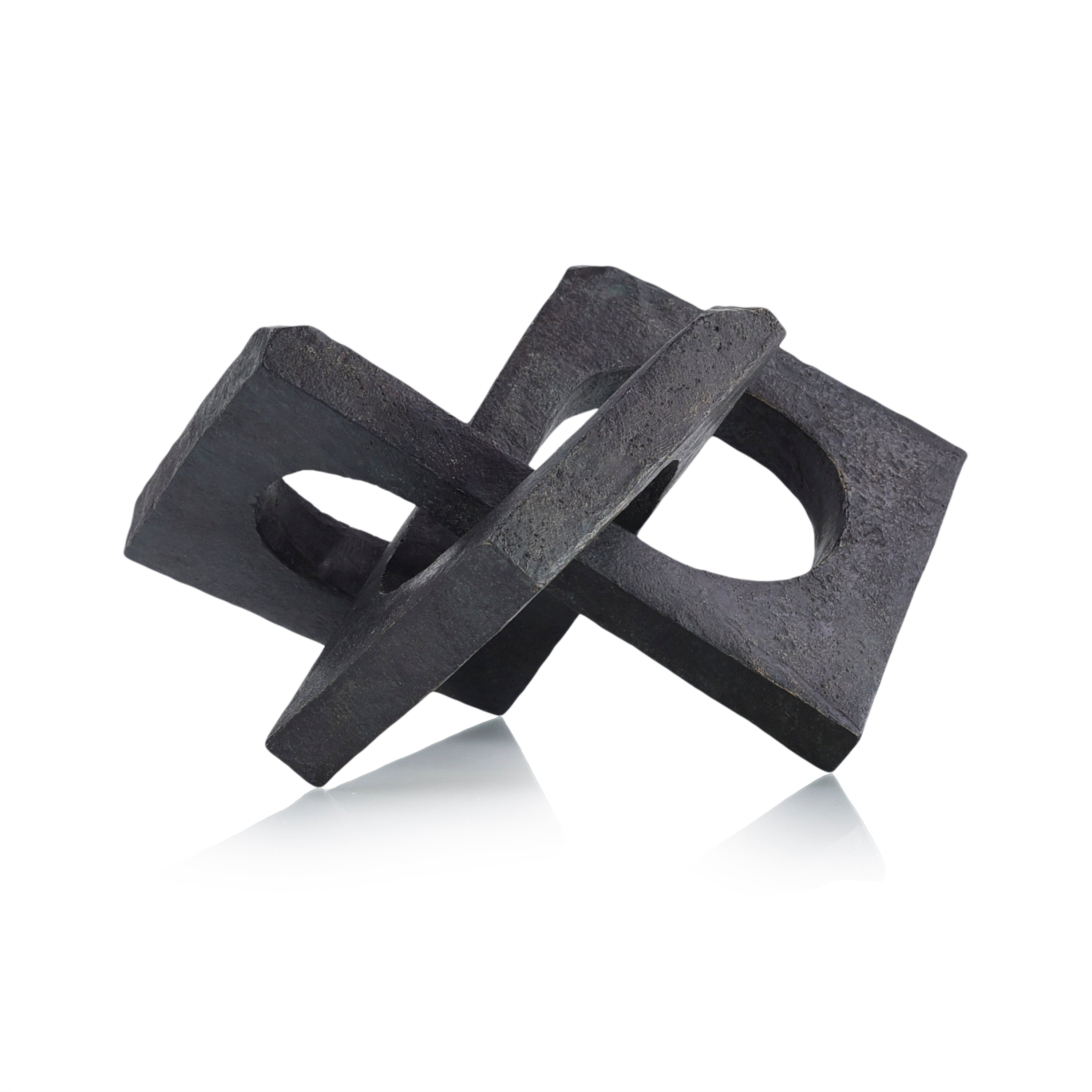 The Interlinked Sculpture is a stylish accent that adds a touch of dimension to an interior space. Three composite chain links connect at a canted angle, allowing the piece to stand by itself.