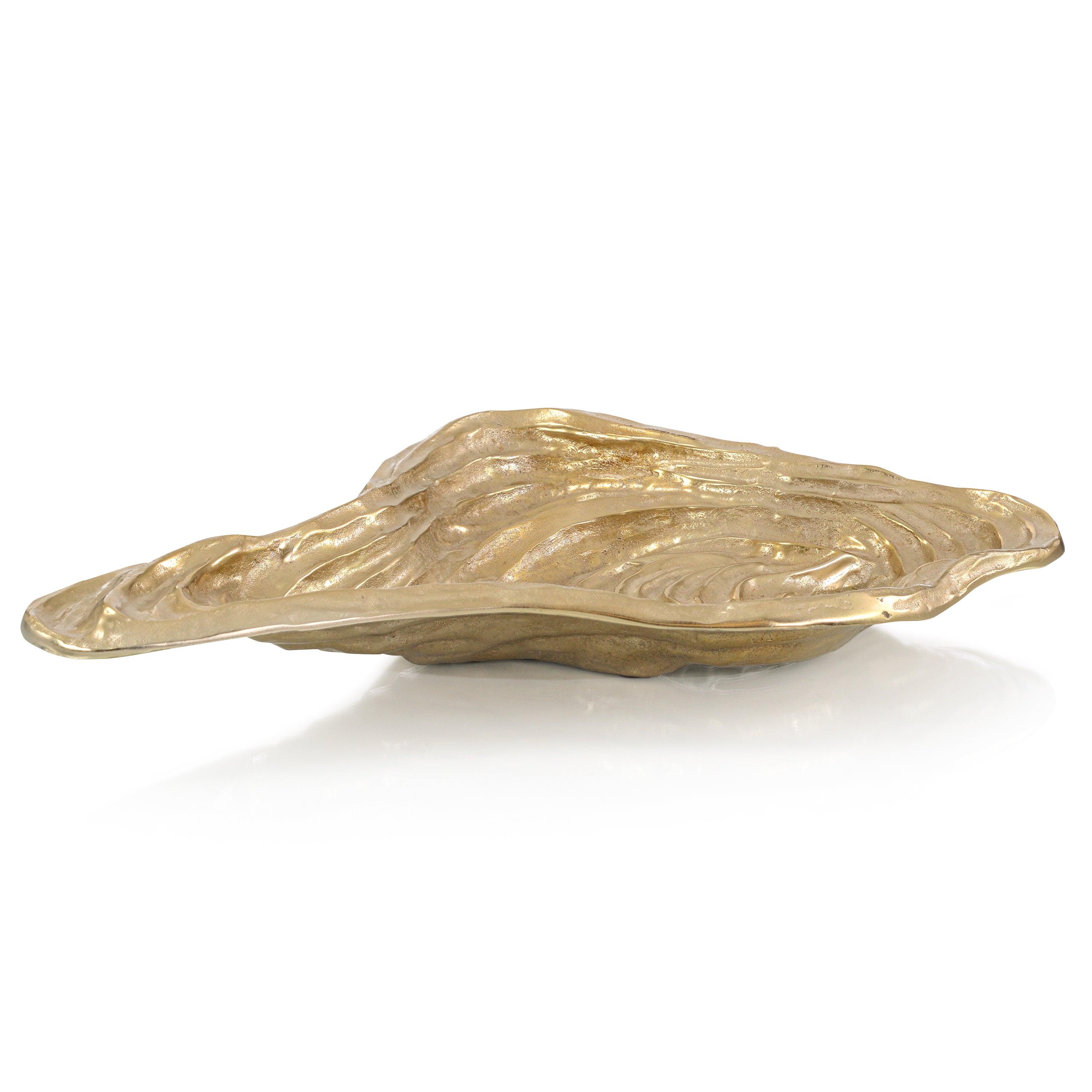 This organically sculpted terraced tray is cast in aluminum in a antiqued gold finish.