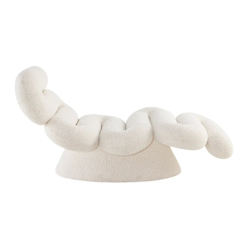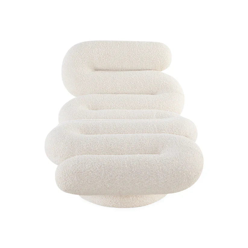 Our ultra-mod Serpentine Swivel Chair features a thick and cushy seat cradled by an ultra-mod tube wrapped in our luxe Olympus Oatmeal bouclé. Perfect for floating in the room—swivel to show it off from every angle.