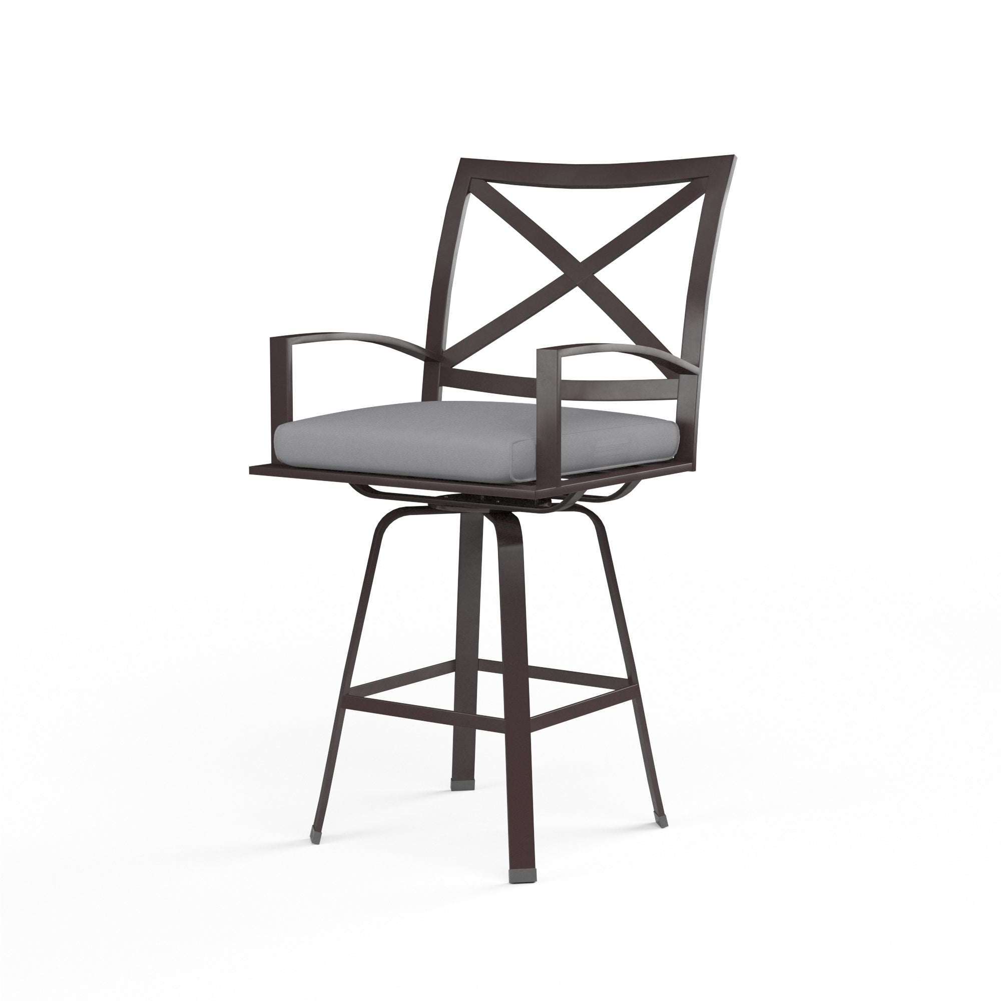 Sunset West's classic La Jolla Counter Stool is rendered in high quality, low-maintenance aluminum that will stand the test of time. This stool features a gently curved X back and seat scaled for comfort, with swivel base and subtly curved arms.