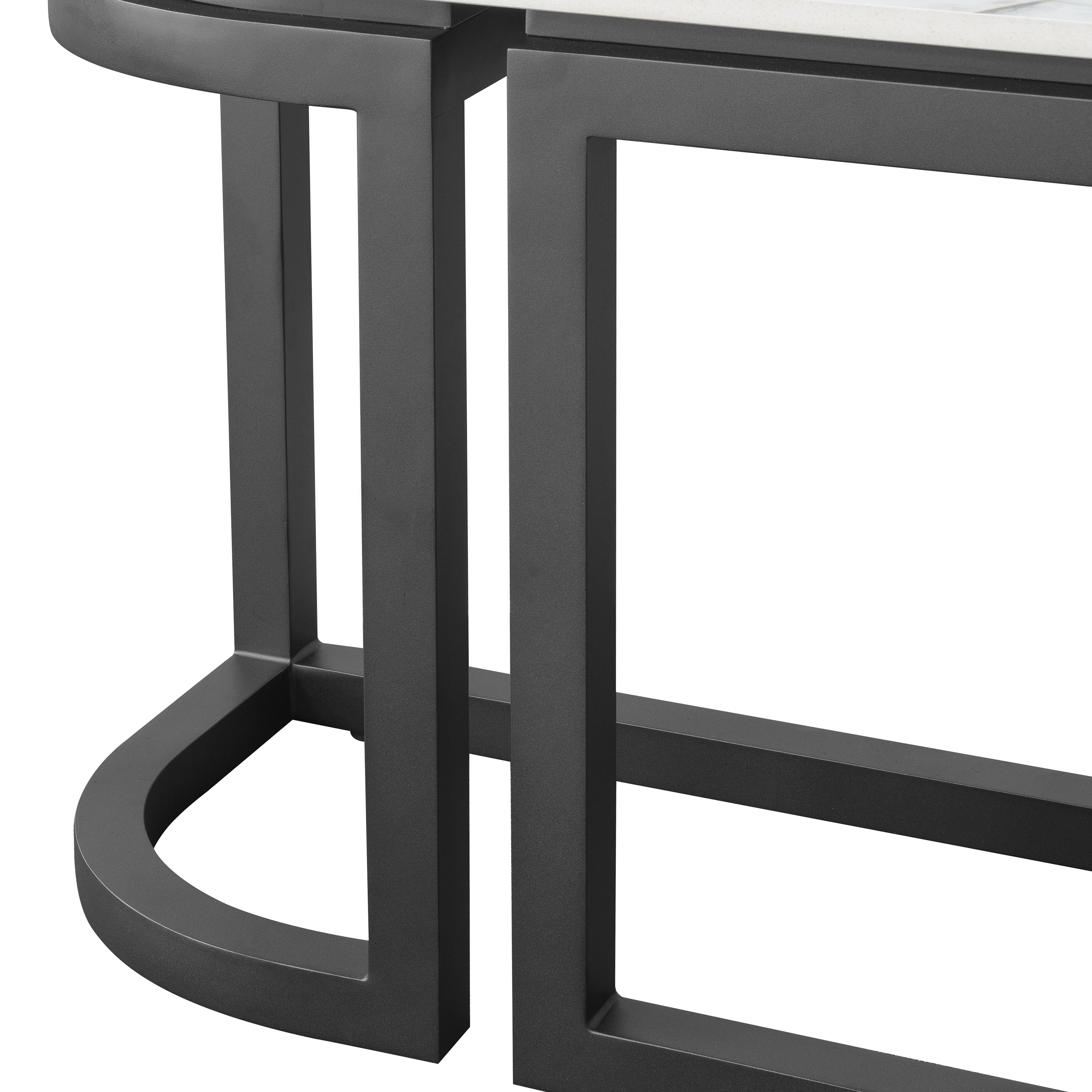 Deco meets contemporary with Sunset West’s Malibu Collection. The Malibu Cocktail Table adds a sophisticated, sleek look with its curved edges and matte coal finish.
