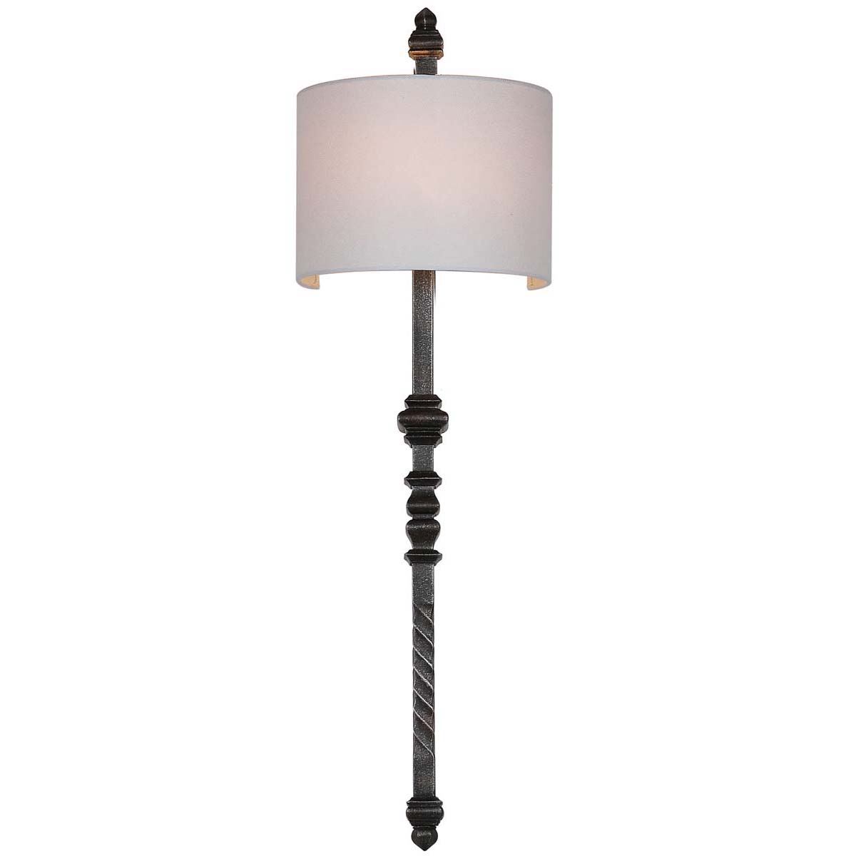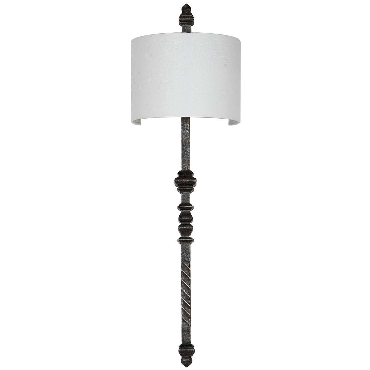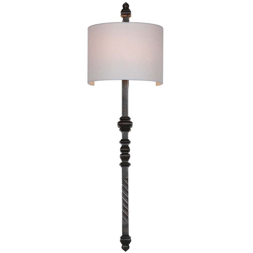 Imbued with the style of a grand maison, this wall sconce lends character to the living room, foyer or bedroom. Paired with a classic off white shade, its silver black finish recalls the patina of a fine antique. Use in pairs for a designer touch.