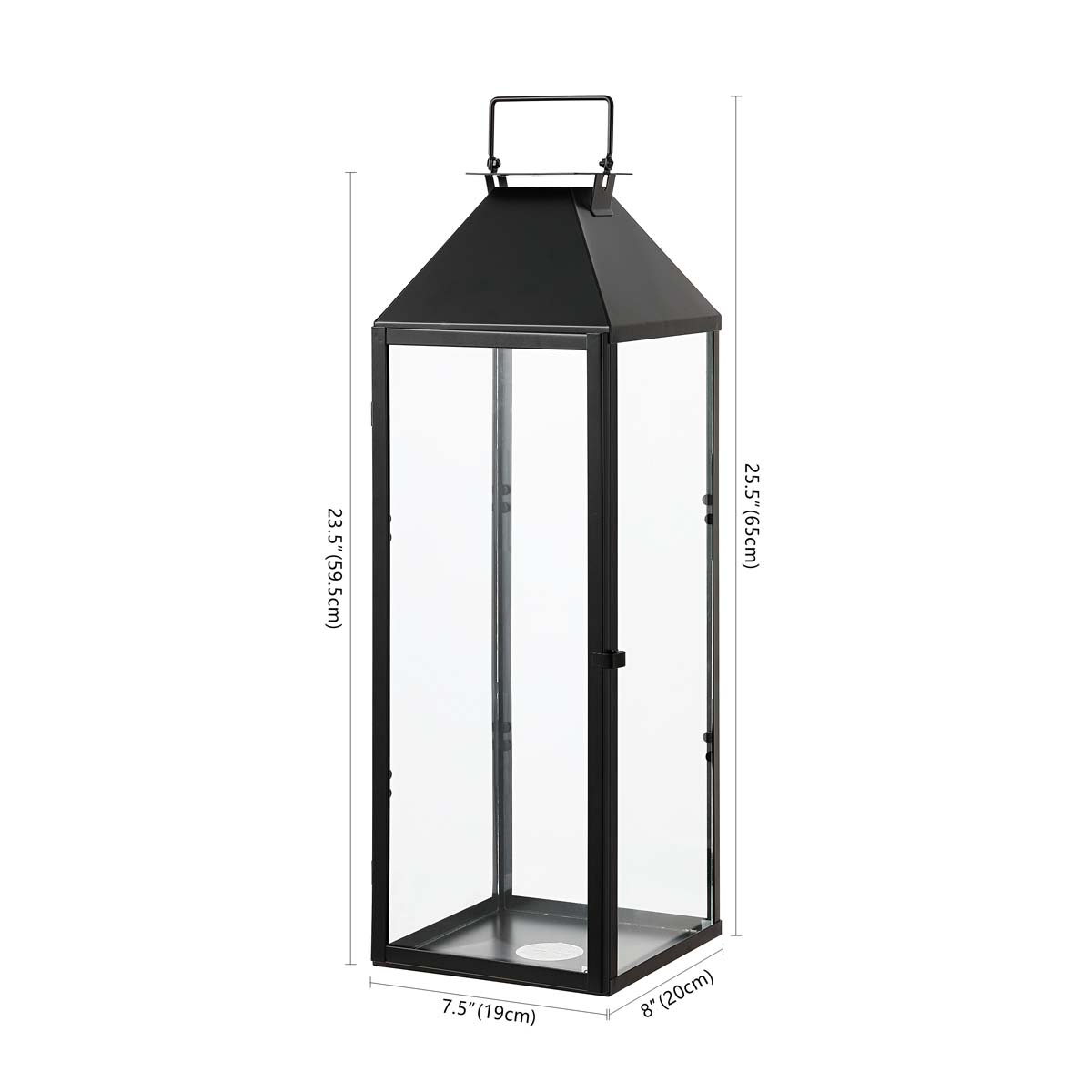 Elevate the style and ambiance of any outdoor space with our Ruane outdoor lantern. Beautifully updating and streamlining a classic lantern, our set of outdoor lanterns stands out with a tall and elongated profile. It features a clean-lined metallic frame and a classic rooftop to become a charming and versatile addition to any outdoor space. The lantern is composed of clear glass panes, creating a stunning display for a candle and emitting soft mood lighting. Available with a sleek rectangular handle, our outdoor lantern can be carried anywhere from your front porch to an outdoor dining table.