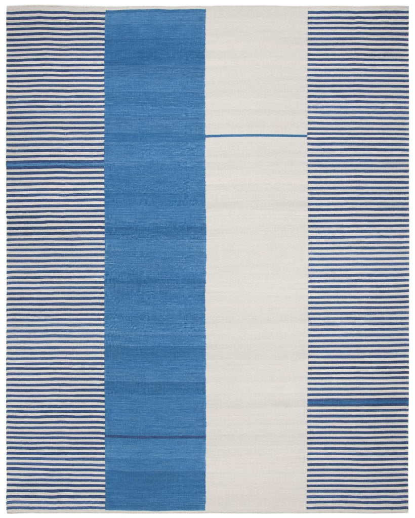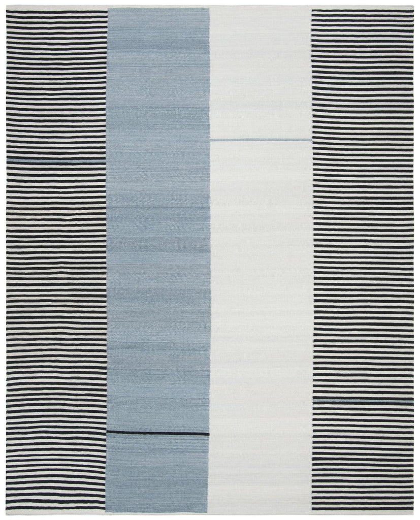 Contemporary asymmetrical design and bold, solid color statements are artfully showcased in the mod Aryn Stripe. Aryn?s block structure lends balance and distinguishing character to overall striped pattern. Classic hand woven flat weave construction using pure handspun wool.