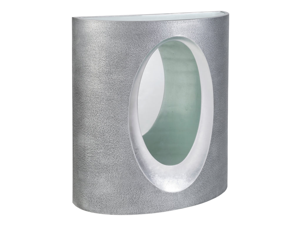 Modern, organic casted design in a textured gray finished exterior with contrasting silver leaf finish in the decorative open area. Textured gray finished base with decorative open area finished in silver leaf, silver leaf finished plinth base and inset tempered glass top. . Glass top 30. 75W x 9. 75D x . 375 inch thick with 1 inch bevel. , SIGNATURE DESIGNS ,