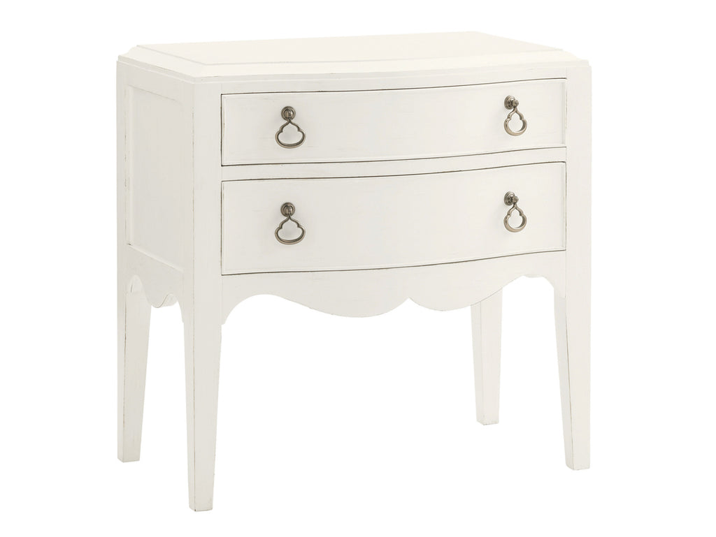 The two drawers provide bedside storage and ample surface area for lighting and alarm clocks. Inspired by the pastel homes, crisp whitewashed roofs and lush landscape of Bermuda, Ivory Key features a distinctive quatrefoil and diamond design, complemented by a fresh palette of captivating island colors. Blending traditional elements, leather-wrapped bamboo and raffia accents offers a spirited take on refined island living. The look is sophisticated but the lifestyle is casual and cool – the essence of the Tommy Bahama brand.